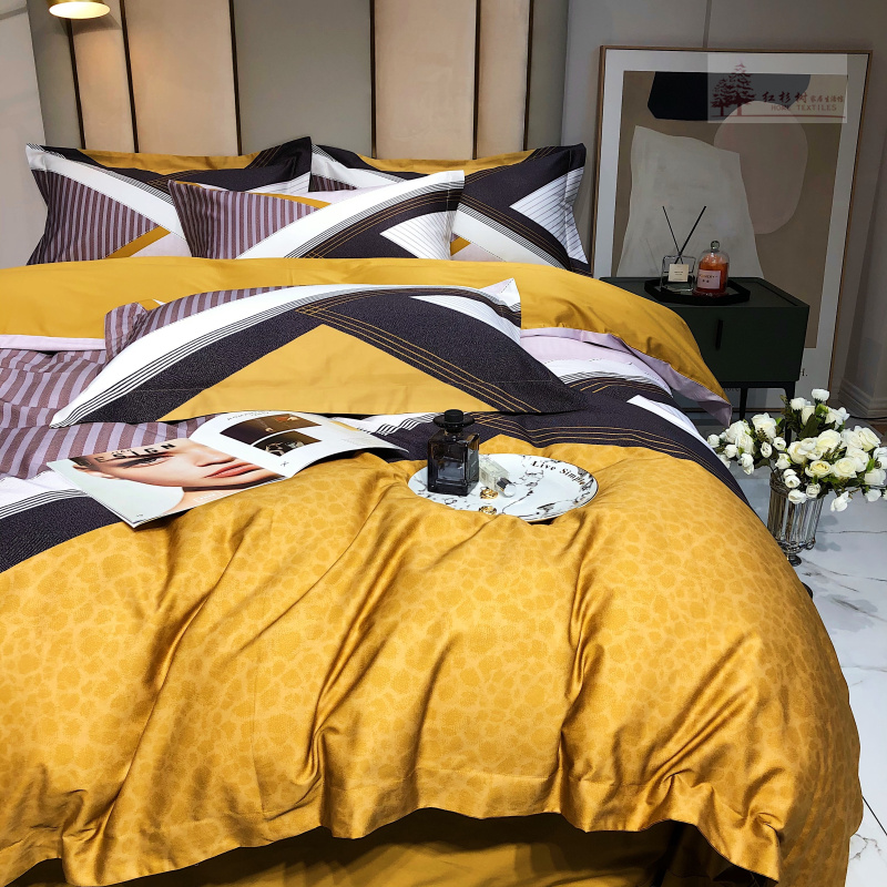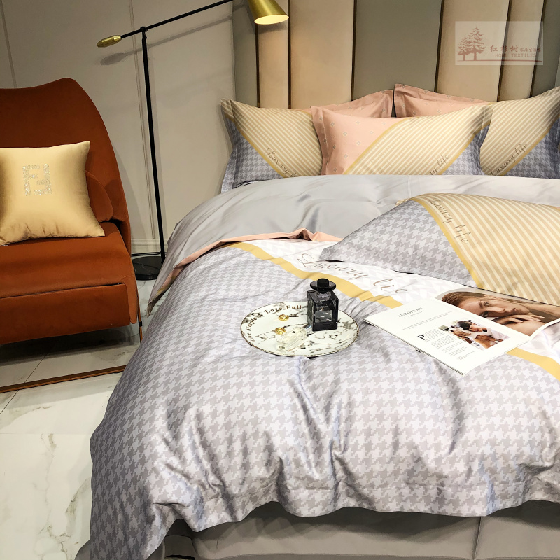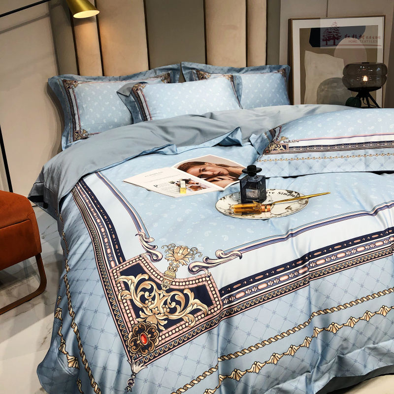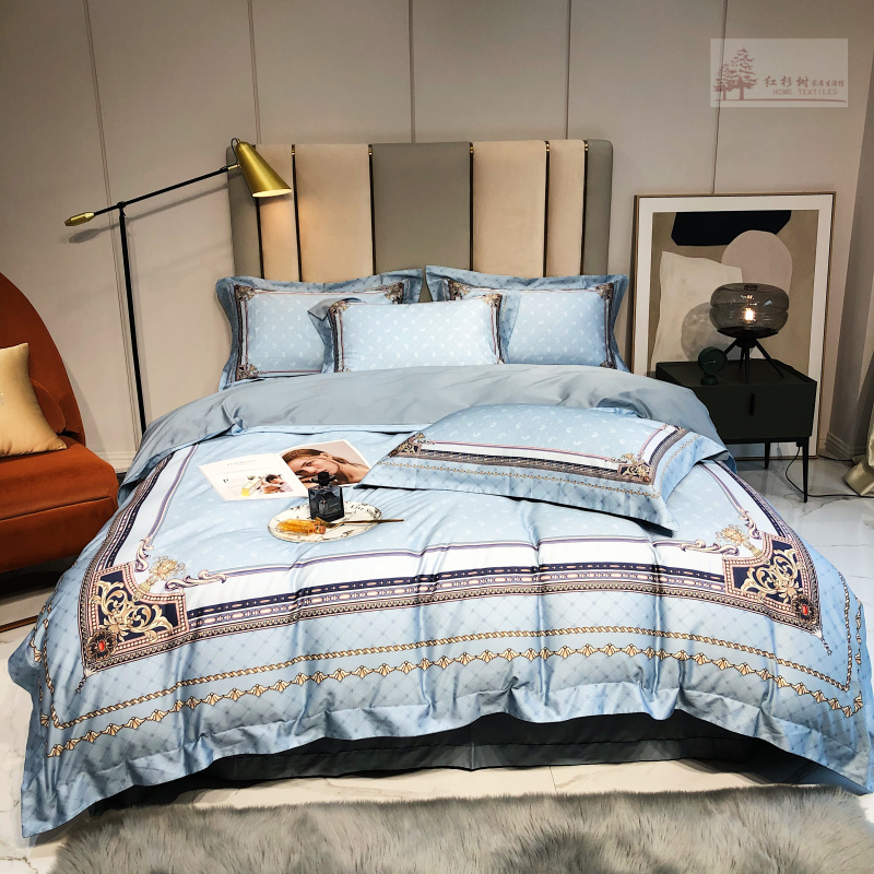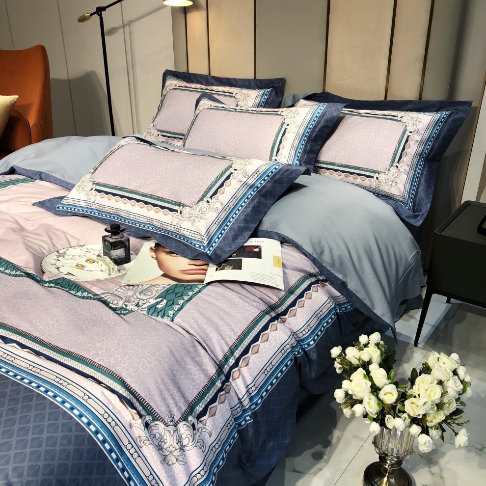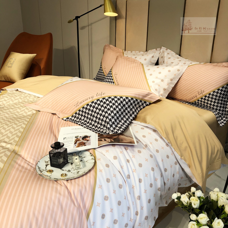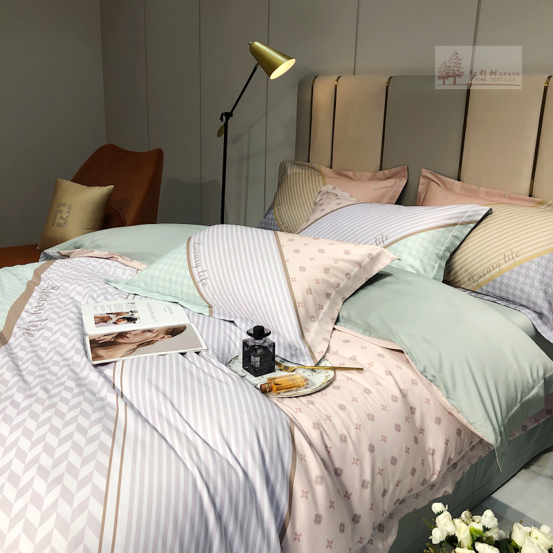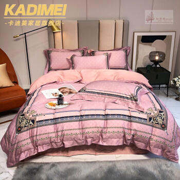 Kadimei light luxury brand European thousand bird all cotton four piece set high end digital printing stripe 100 thread long staple cotton bedding ml -- green pink 2.0m (suitable for 220 * 240cm quilt core)