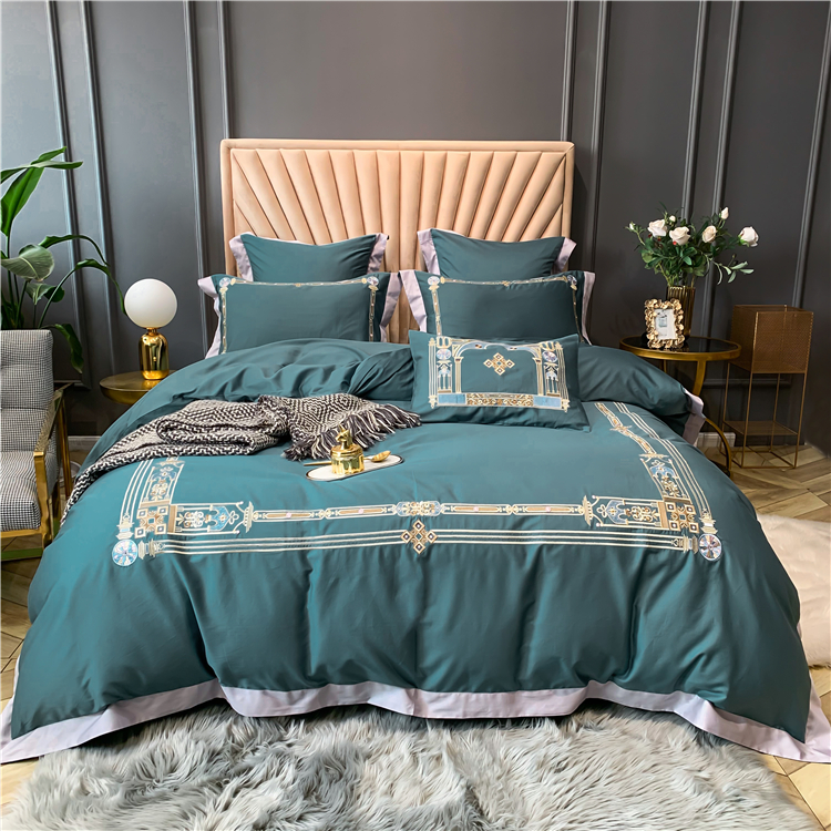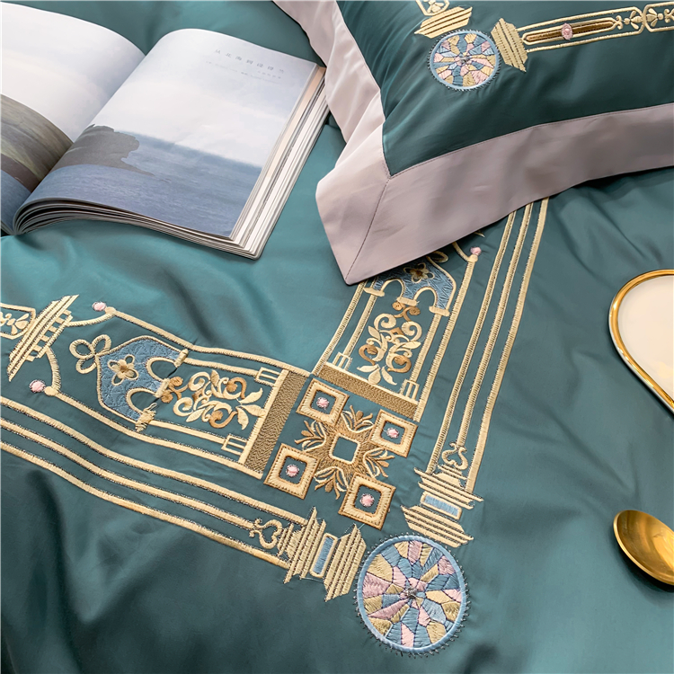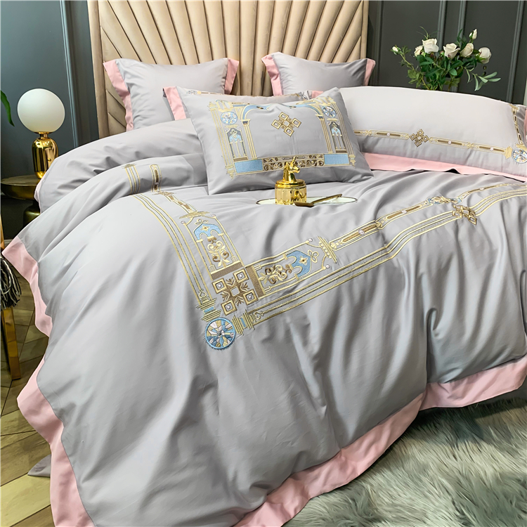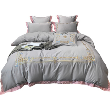 Kadimei light luxury brand imports 80 thread count cotton long staple cotton four piece set high end quilt cover nude sleeping skin friendly pure cotton bed sheet embroidery bedding Kris gray 2.0m bed sheet [quilt cover 220x240] [picture price brand...
