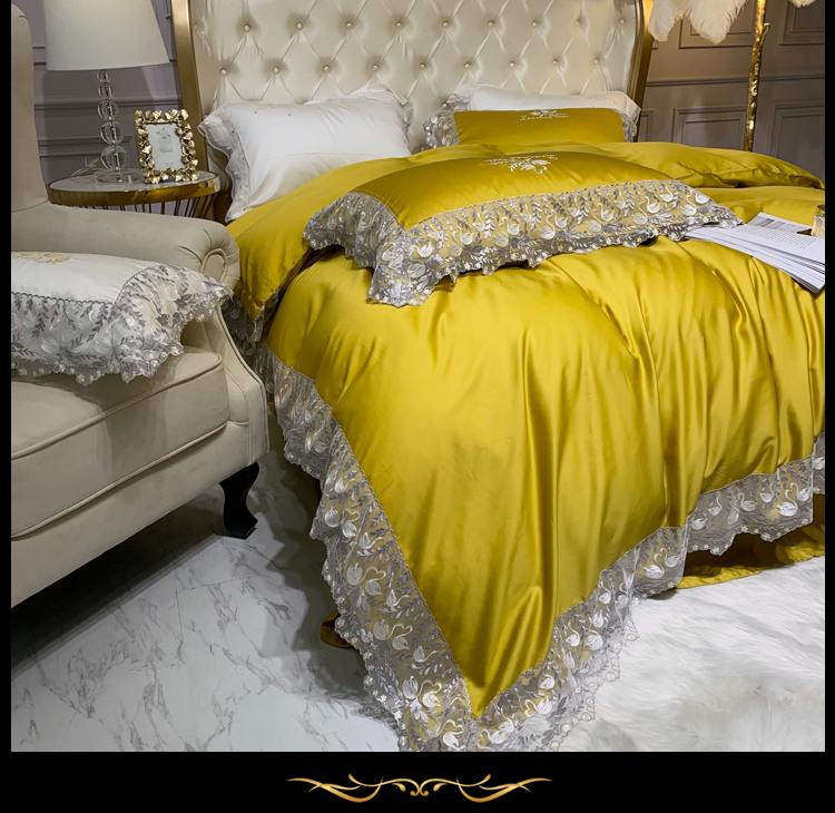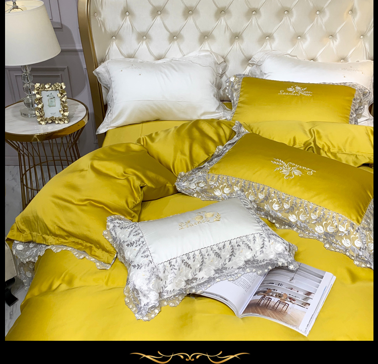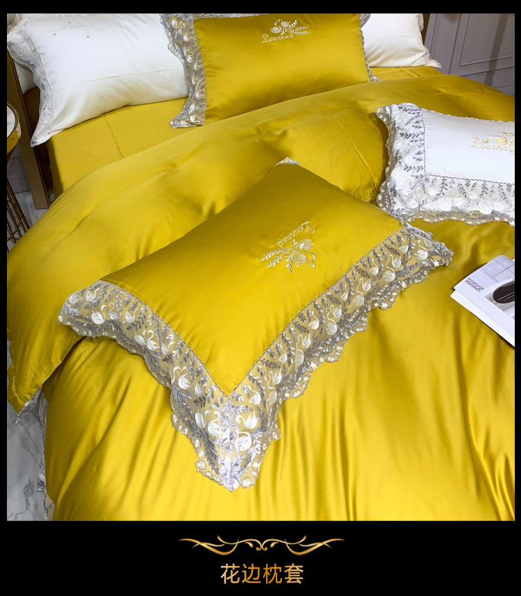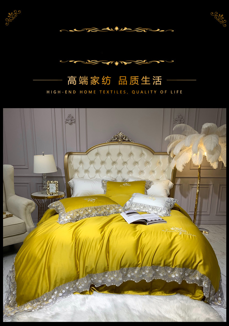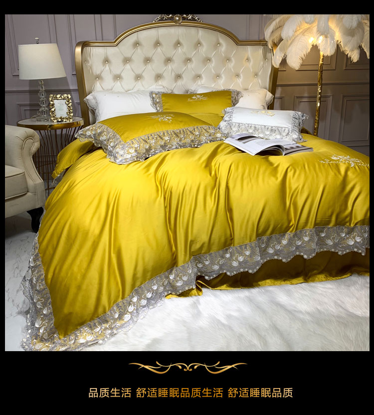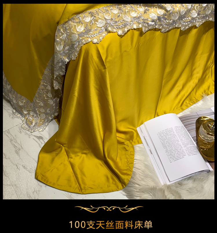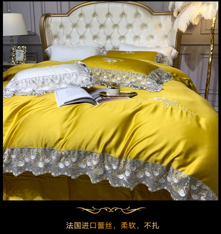 Kadimei light luxury brand 4-piece set high-end French style 100 thread double-sided silky smooth and naked sleeping summer ice silk golden lace bedding Swan Lake 1.5m bed (quilt cover 200 * 230cm) [picture price brand quotation] - Jingdong