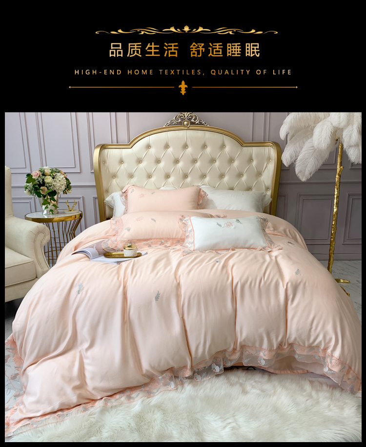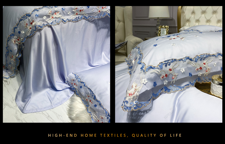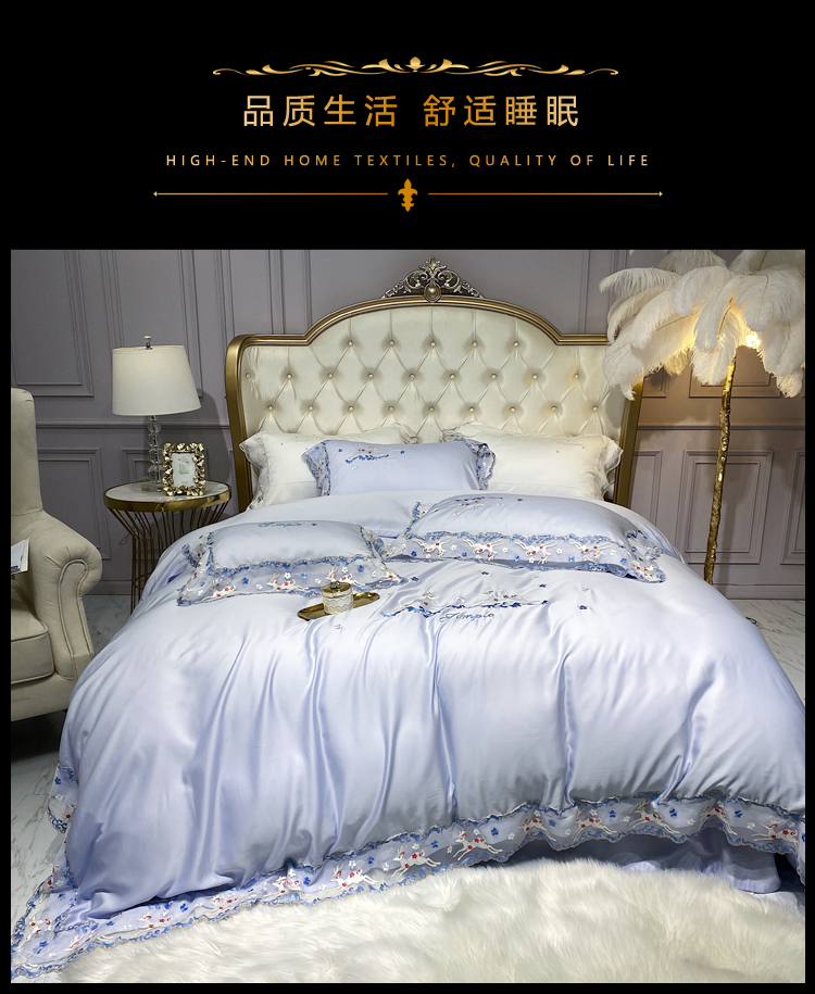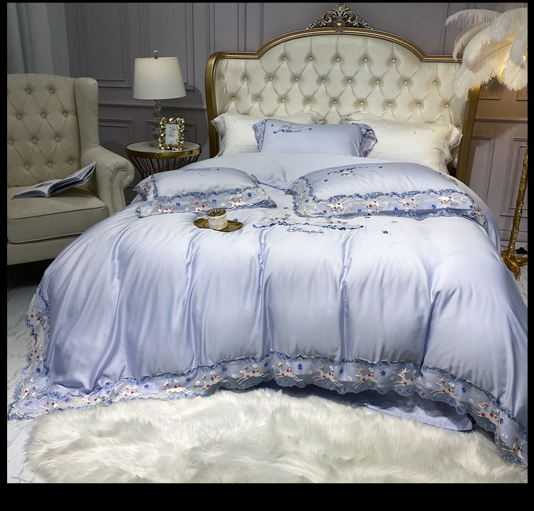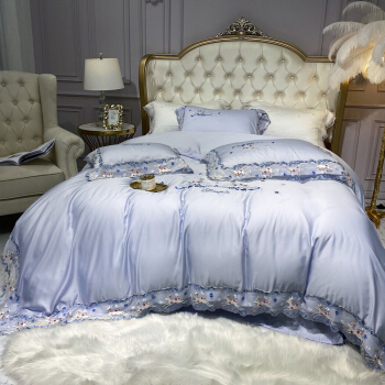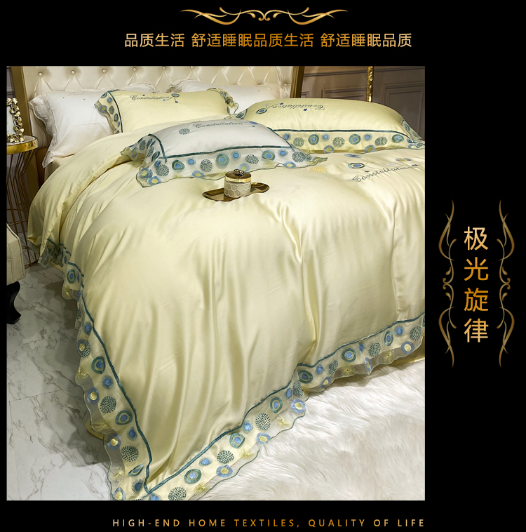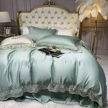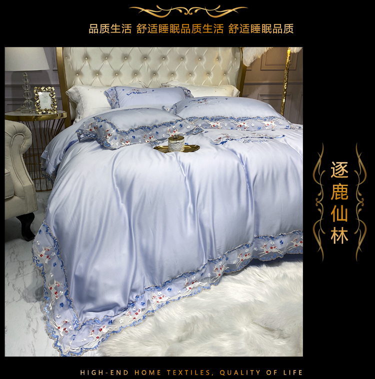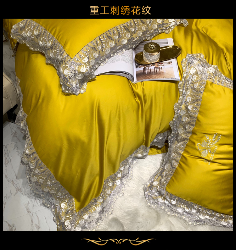 Kadimei light luxury brand 4-piece set high-end French style 100 thread double-sided silky smooth and naked sleeping summer ice silk golden lace bedding Swan Lake 1.5m bed (quilt cover 200 * 230cm) [picture price brand quotation] - Jingdong