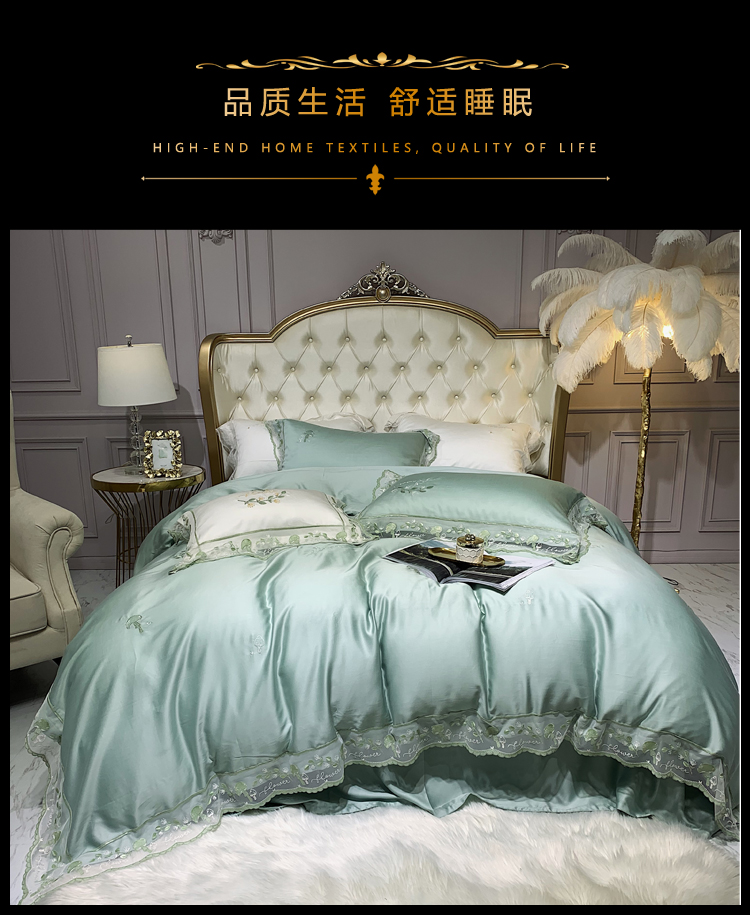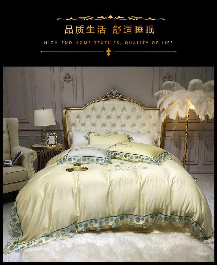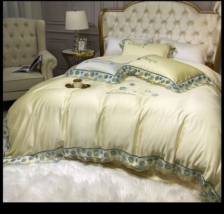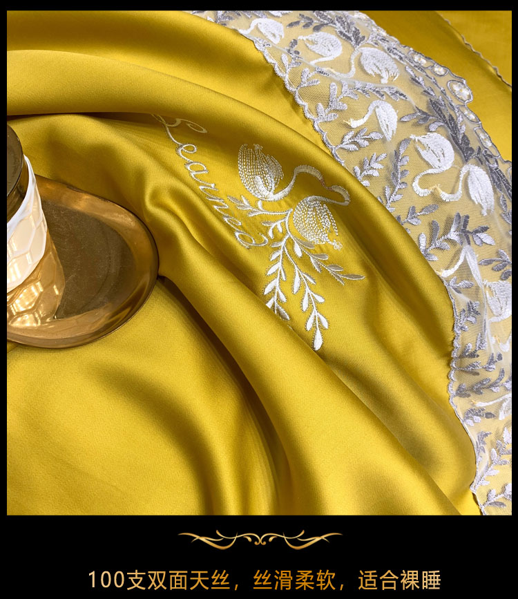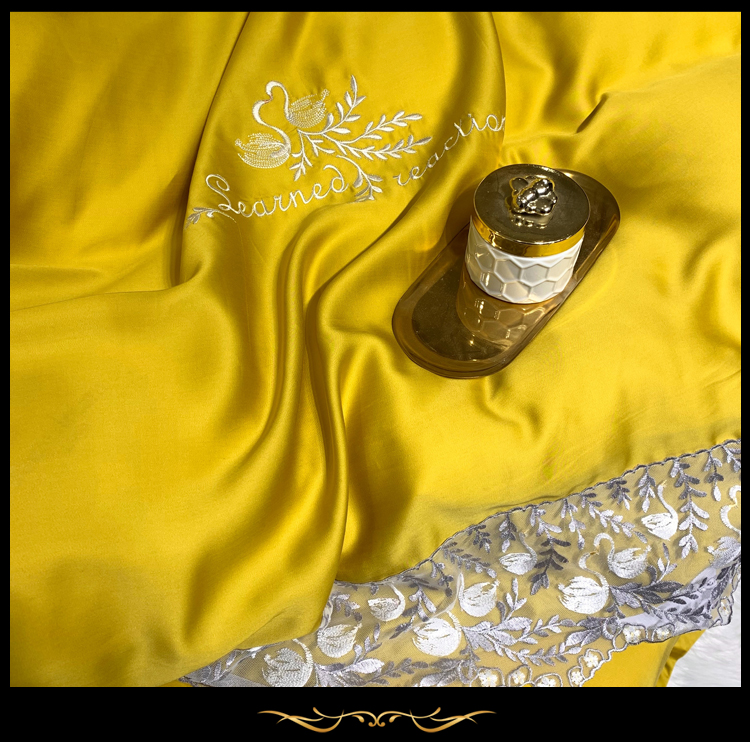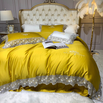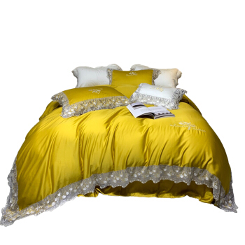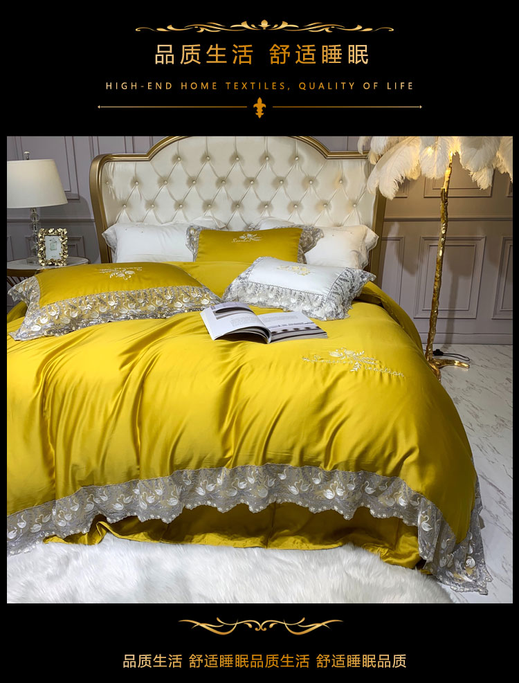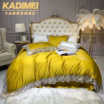 Kadimei light luxury brand 4-piece set high-end French 100 thread double-sided silky smooth and naked sleeping summer ice silk golden lace bedding Swan Lake 1.5m bed (quilt cover 200 * 230cm)