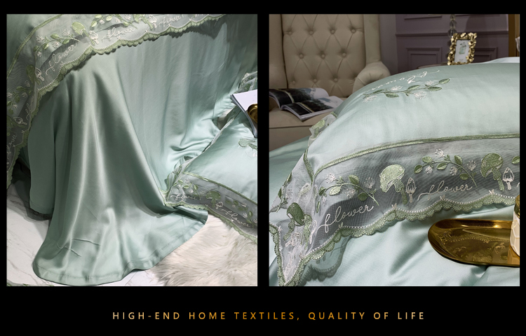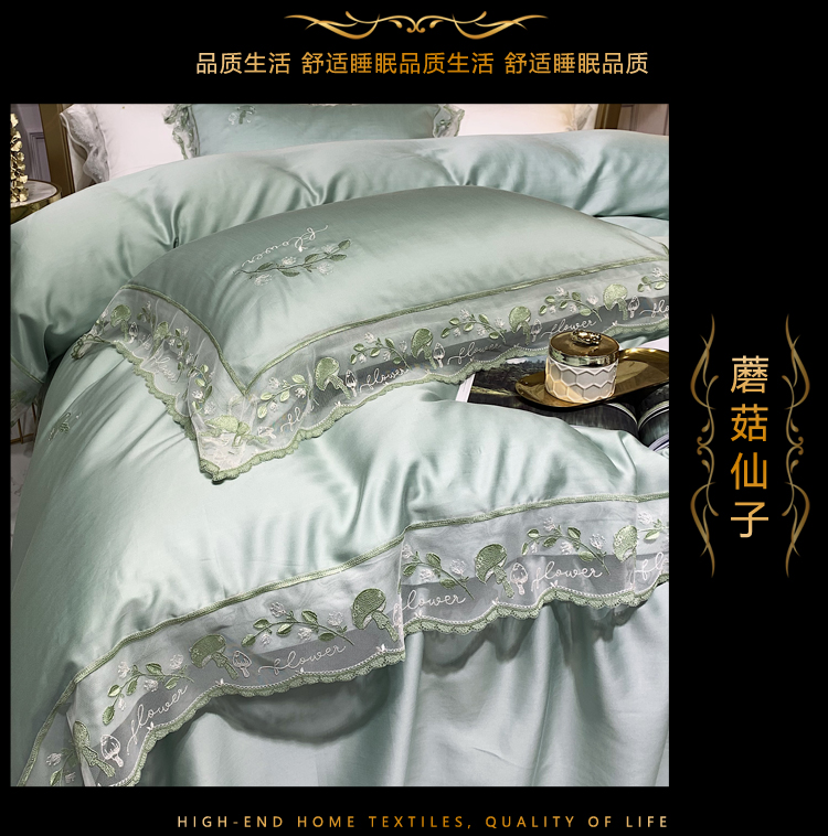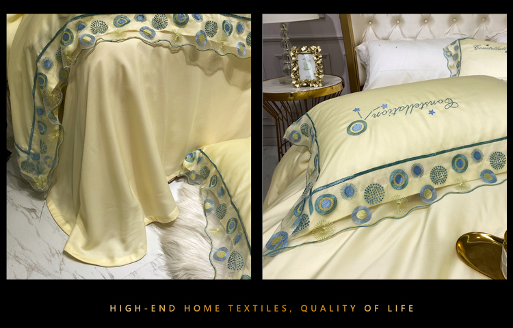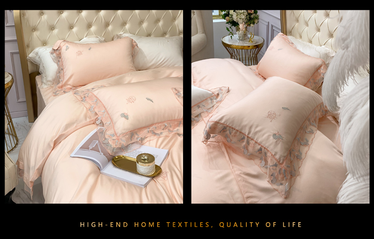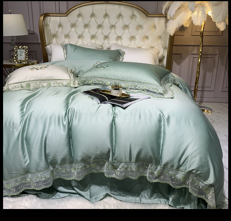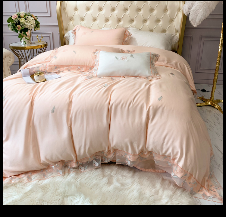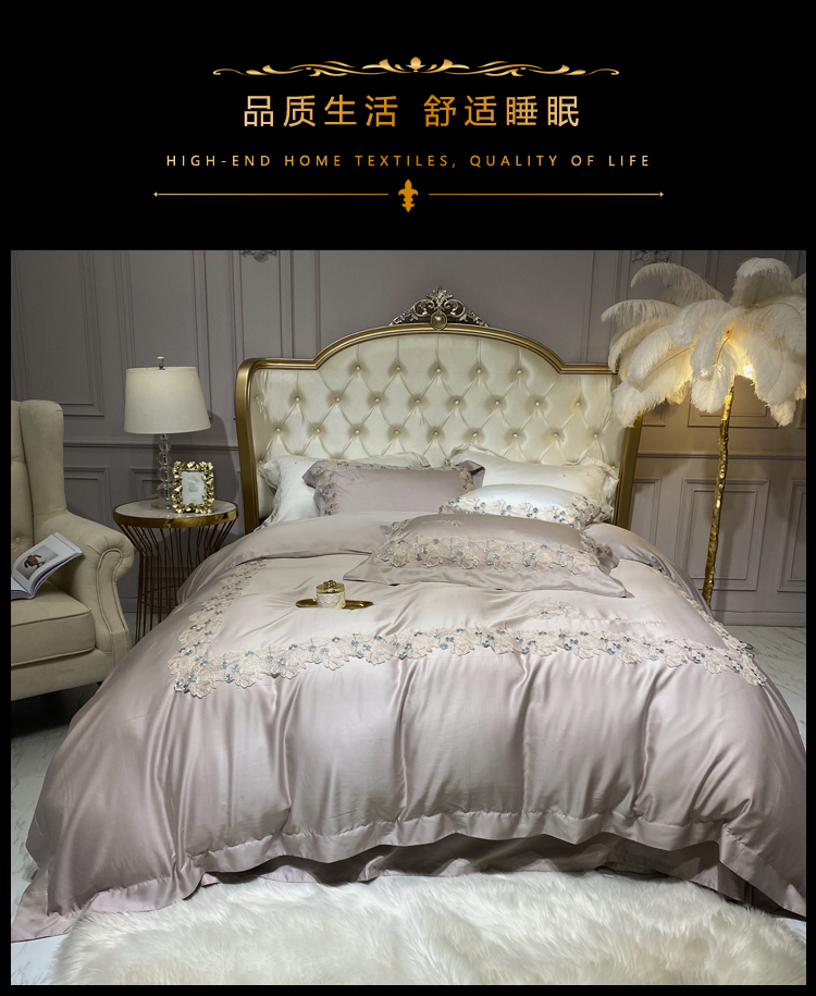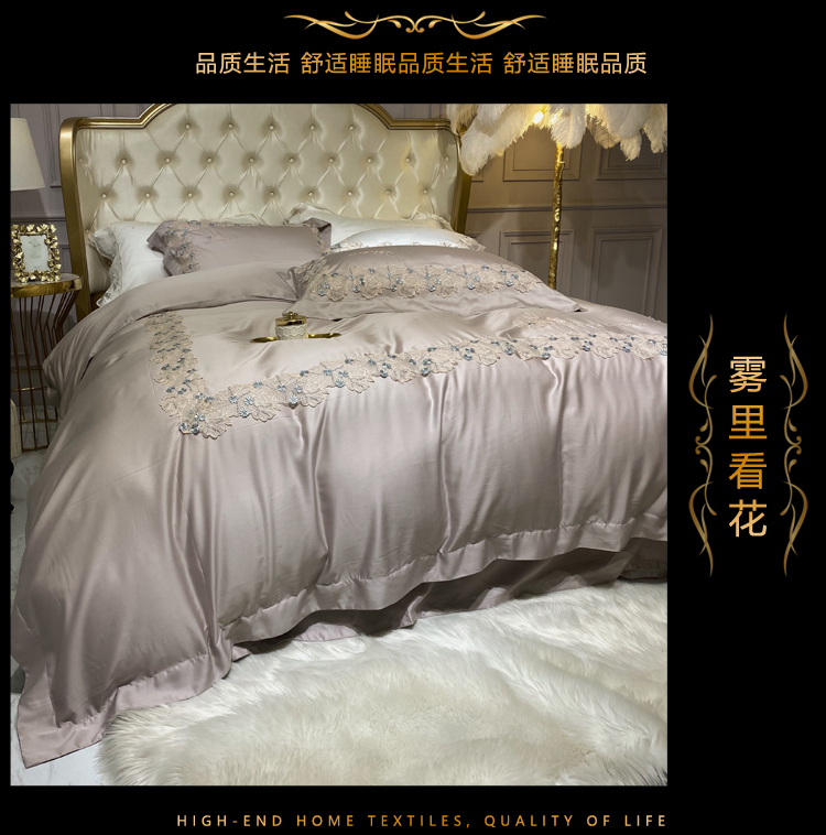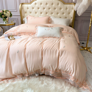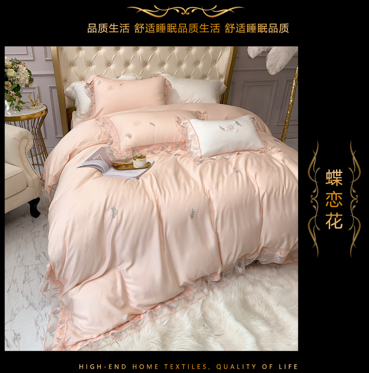 Kadimei light luxury brand 4-piece set high-end French 100 thread double-sided silky smooth and naked sleeping summer ice silk golden lace bedding Swan Lake 1.5m bed (quilt cover 200 * 230cm)