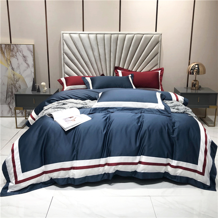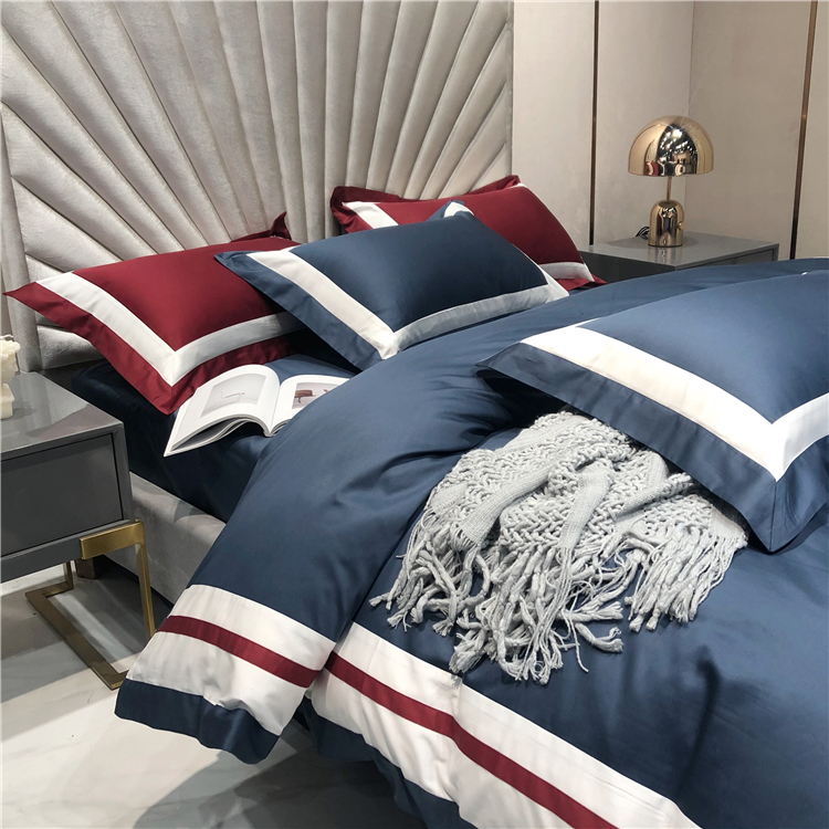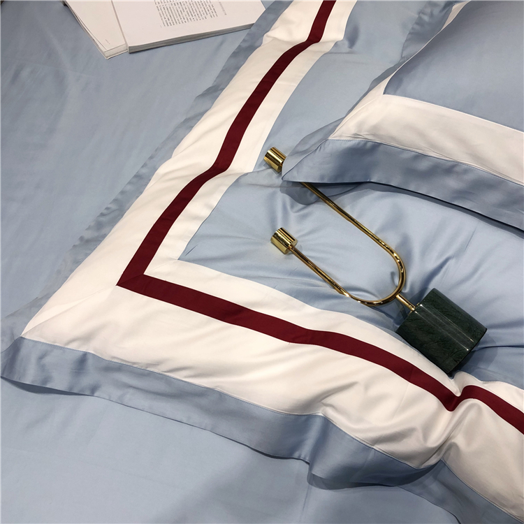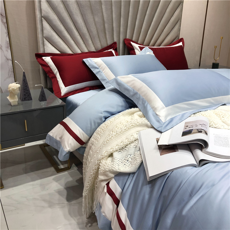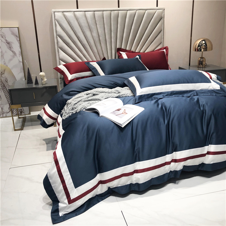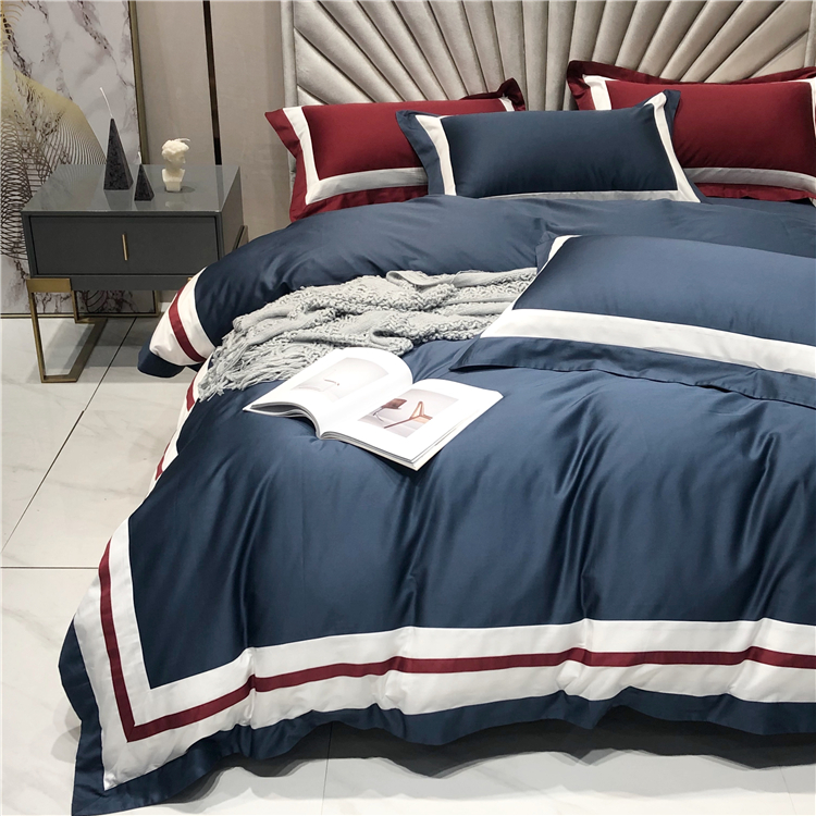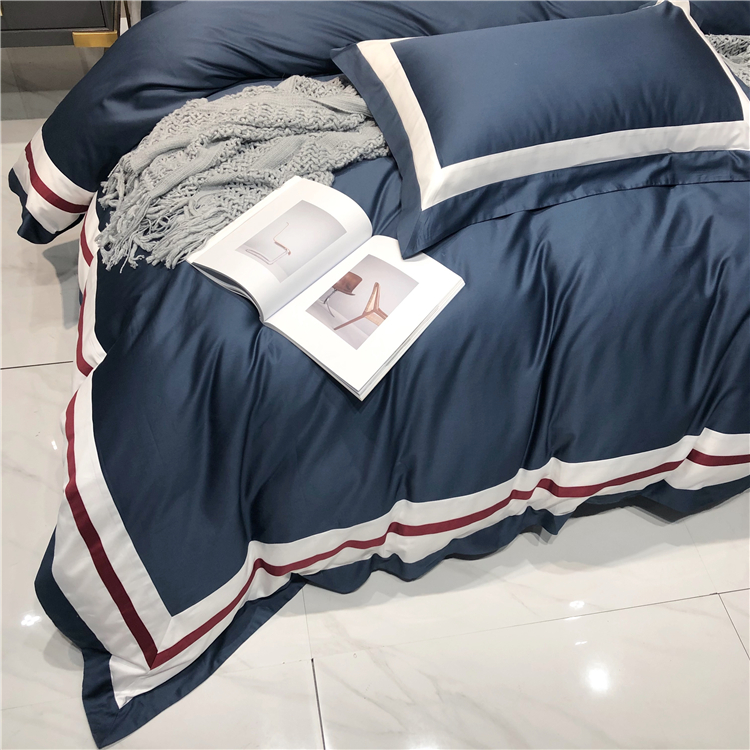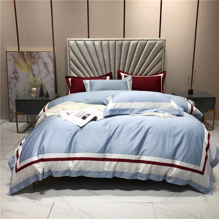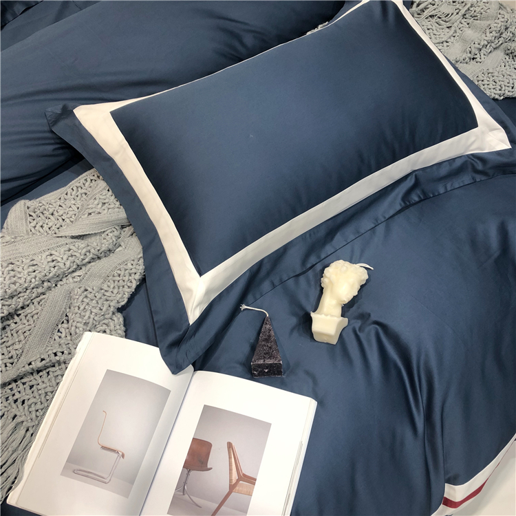 Kadimei light luxury brand Nordic 80 thread Egyptian cotton 4-piece set all cotton cotton cotton satin stitching quilt cover light luxury style bedding sleep Charm Blue 2.0m bed sheet [quilt cover 220x240]