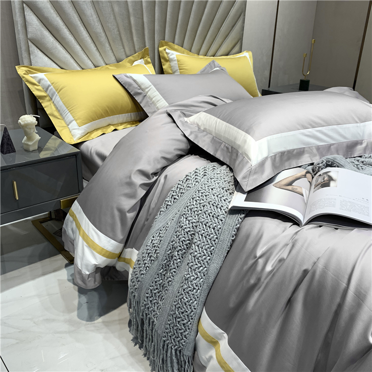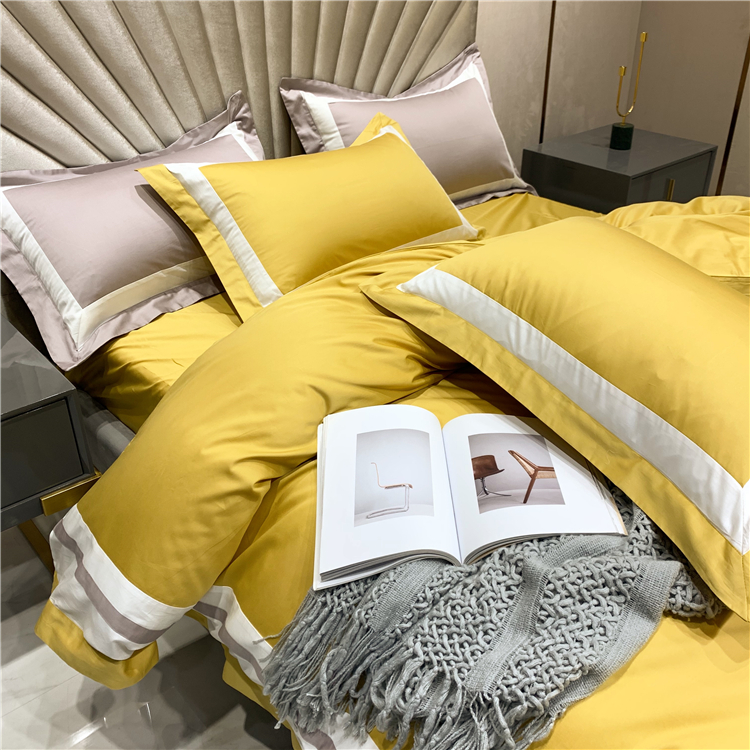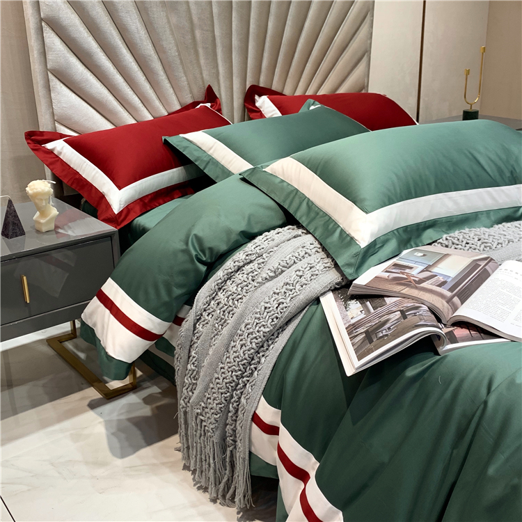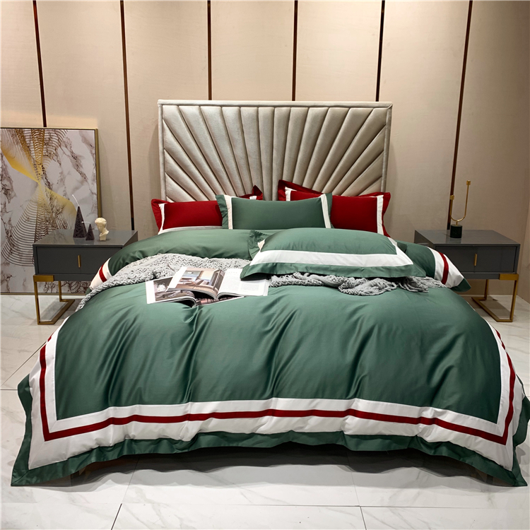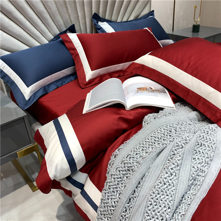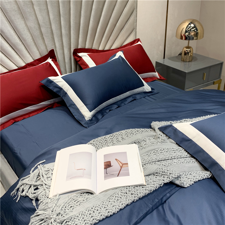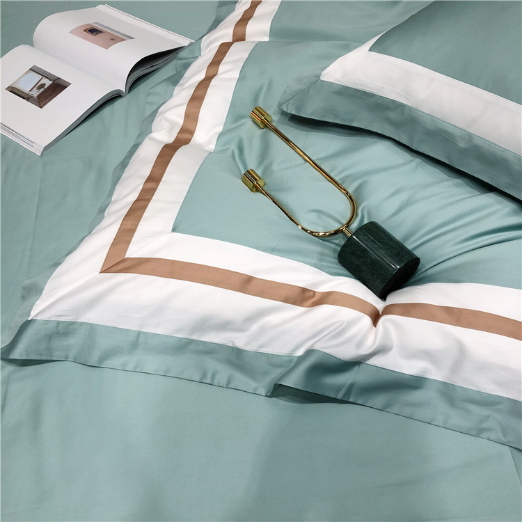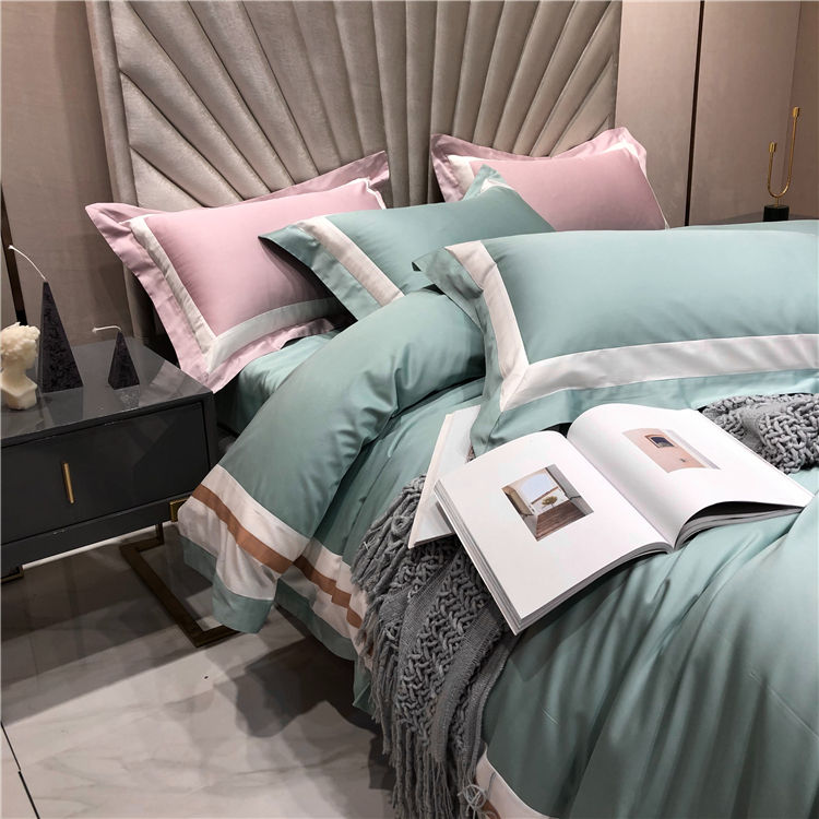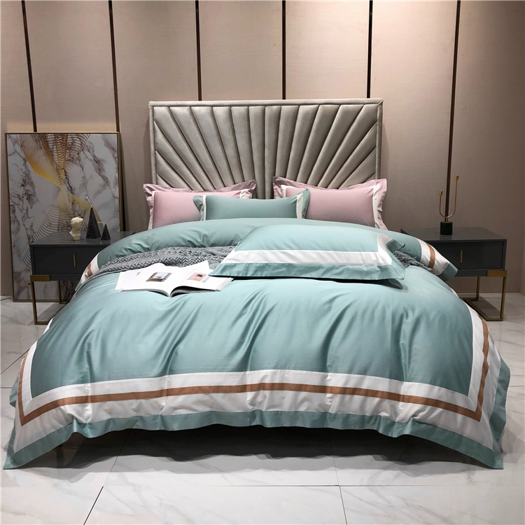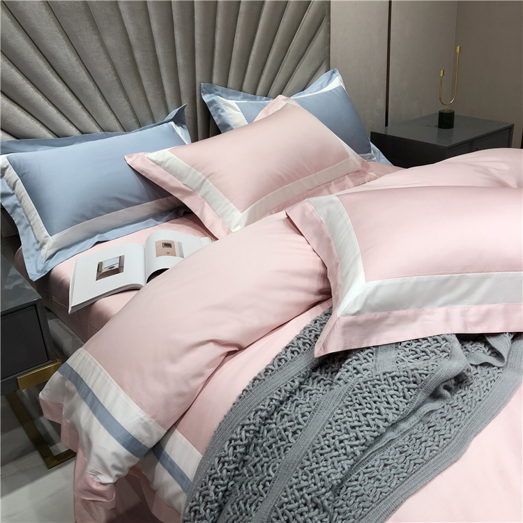 Kadimei light luxury brand Nordic 80 thread Egyptian cotton 4-piece set all cotton cotton cotton satin stitching quilt cover light luxury style bedding sleep Charm Blue 2.0m bed sheet [quilt cover 220x240]