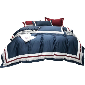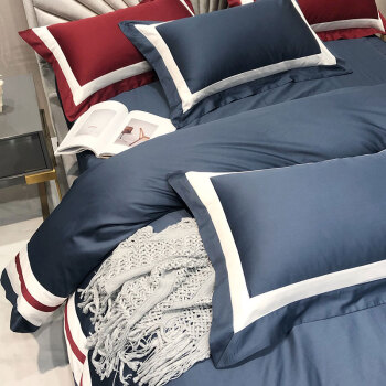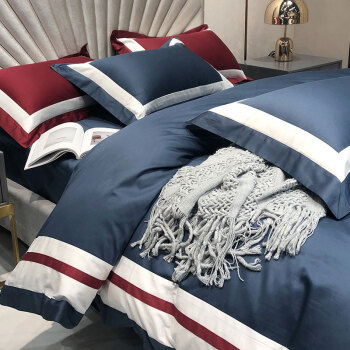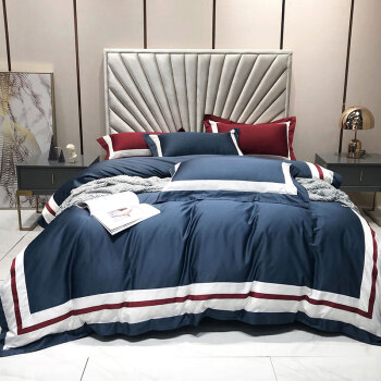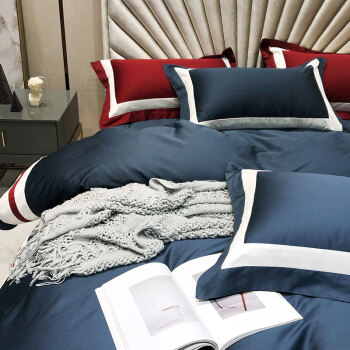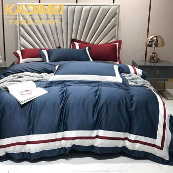 Kadimei light luxury brand Nordic 80 thread Egyptian long staple cotton four piece set all cotton pure cotton satin stitching quilt cover light luxury style bedding sleep Charm Blue 2.0m bed sheet [quilt cover 220x240] [picture price brand quotation]...