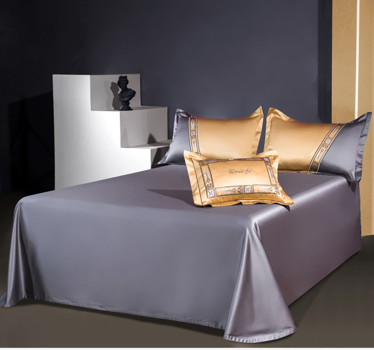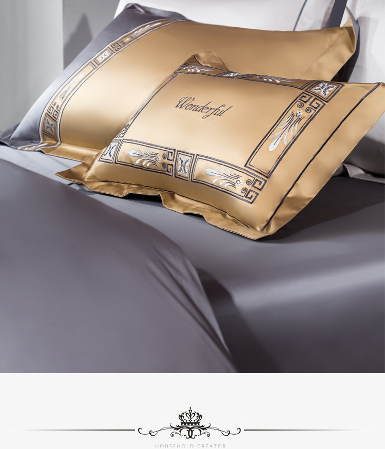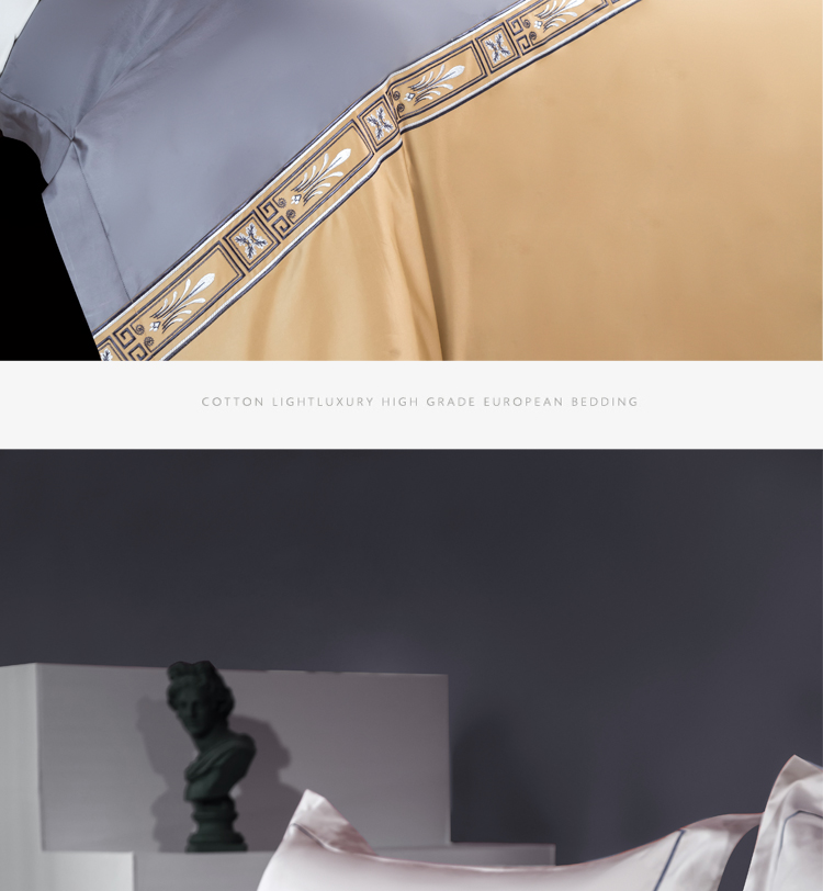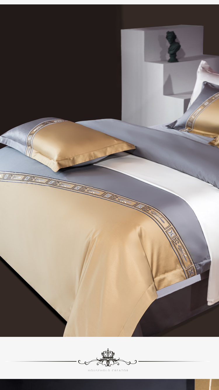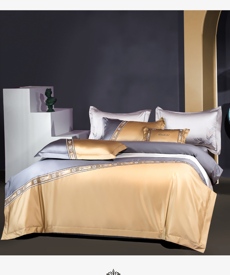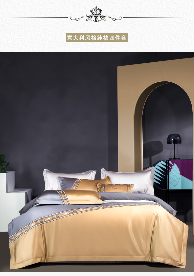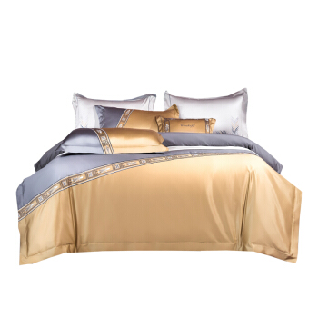 Kadimei light luxury brand light luxury 100 thread household horse cotton 4-piece set of all cotton high-end long staple cotton bed cover bedding home textile Jazz gold sheet 6-Piece set 1.5/1.8m wide bed [quilt cover 20
