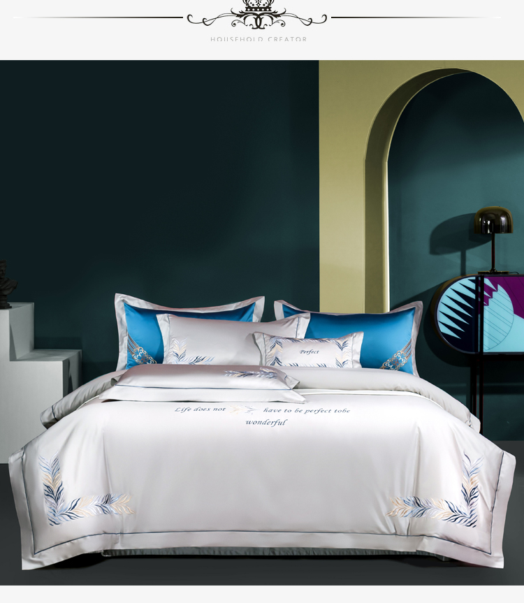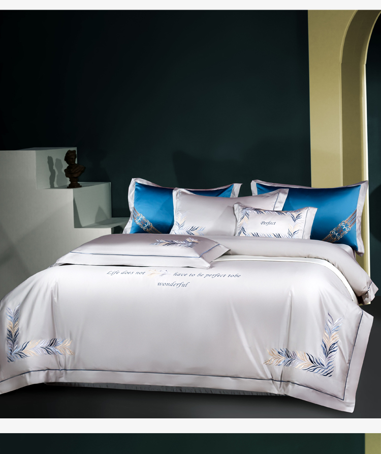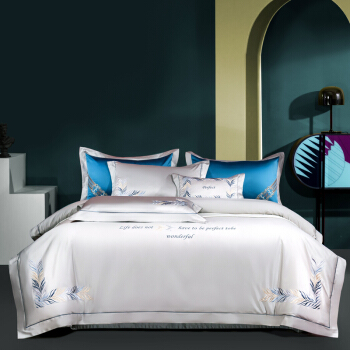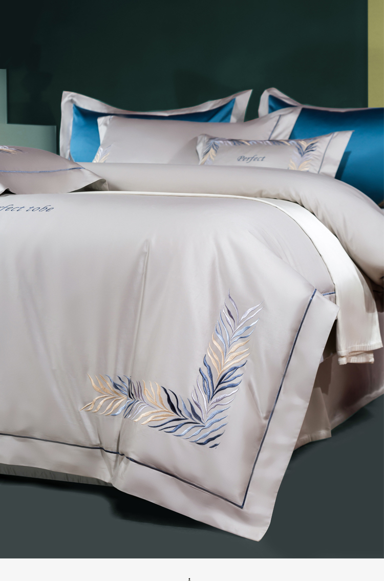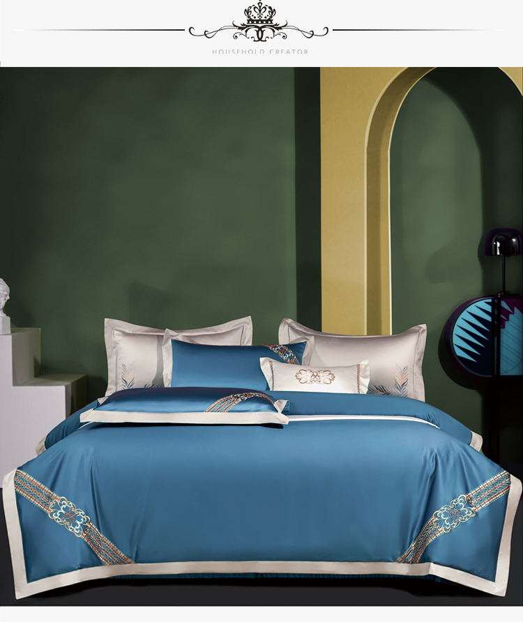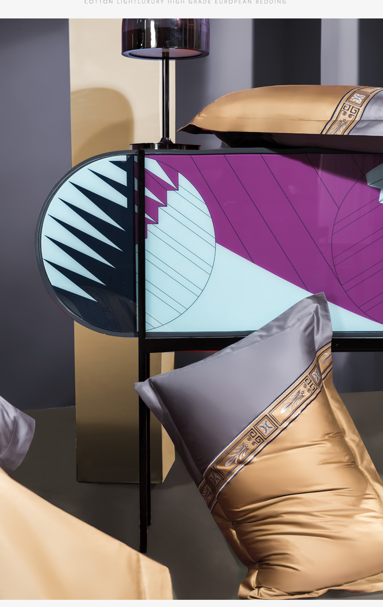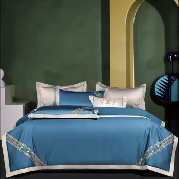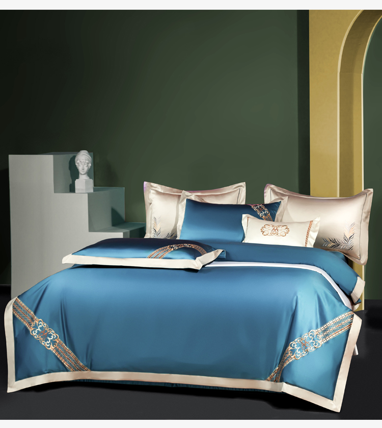 Kadimei light luxury brand light luxury 100 thread household horse cotton 4-piece set of all cotton high-end long staple cotton bed cover bedding home textile Jazz gold sheet 6-Piece set 1.5/1.8m wide bed [quilt cover 20