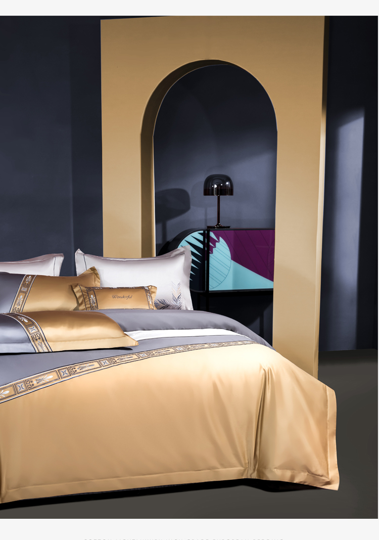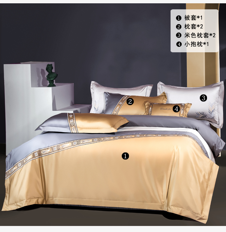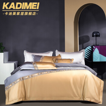 Kadimei light luxury brand light luxury 100 thread household horse cotton 4-piece cotton high-end long staple cotton bed cover bedding home textile Jazz gold bed sheet 6-Piece 1.5/1.8m bed [quilt cover 20 [picture price brand quotation] - Jingdong