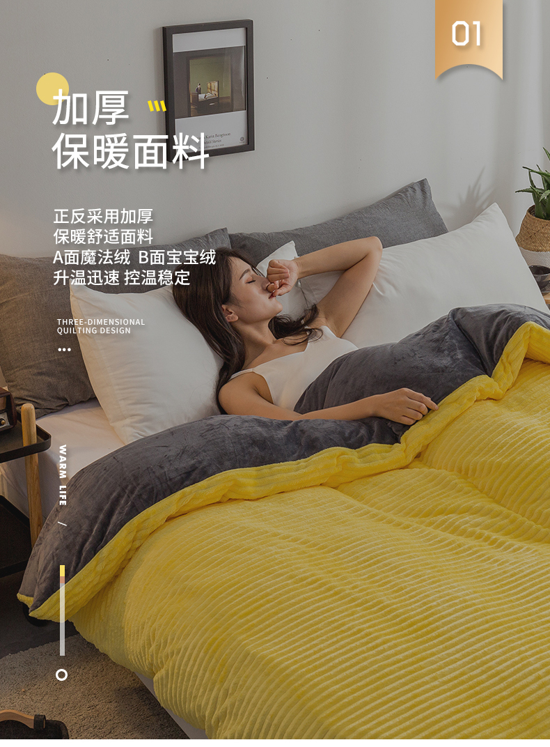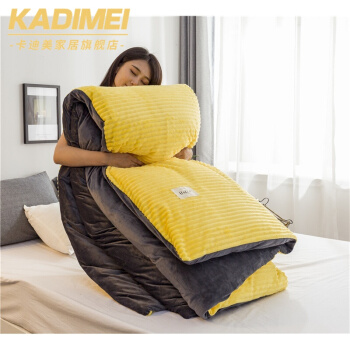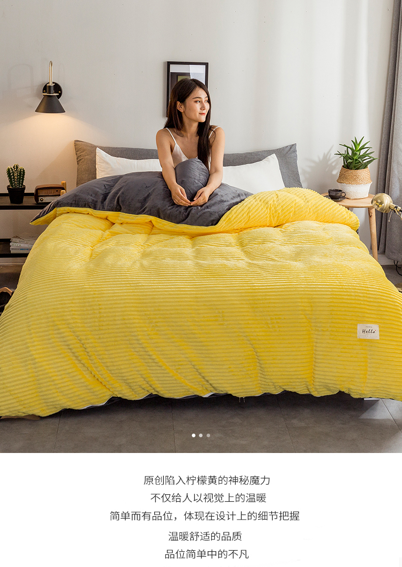 Kadimei light luxury brand single quilt cover double faced velvet thickened double piece quilt cover crystal velvet 1.5m 2 large lemon yellow 150x200cm quilt cover + Spring Autumn quilt [picture price brand quotation] - Jingdong