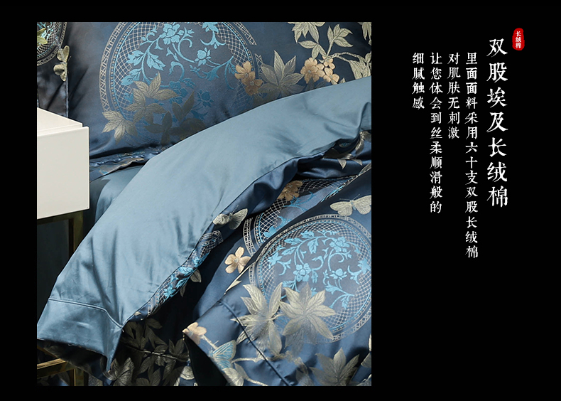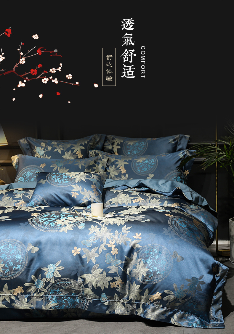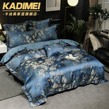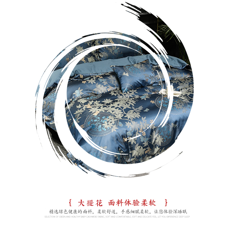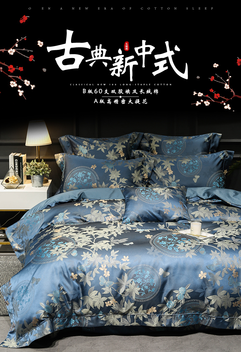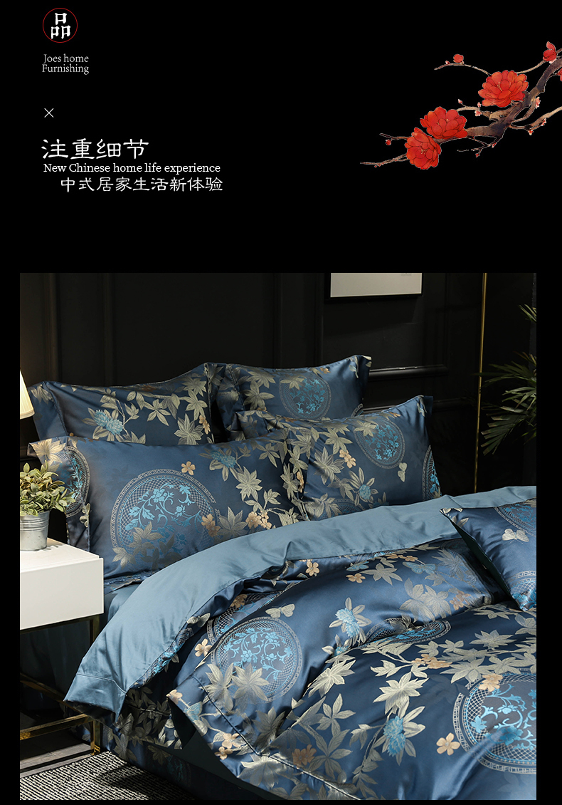 Kadimei light luxury brand 60 thread double strand long staple cotton Satin Jacquard Satin four piece set pure cotton all cotton 2019 new comfortable new Chinese style Fenghuazhengmao suitable for 2.0m bed [quilt cover 220 * 240 bed sheet 245 * 2