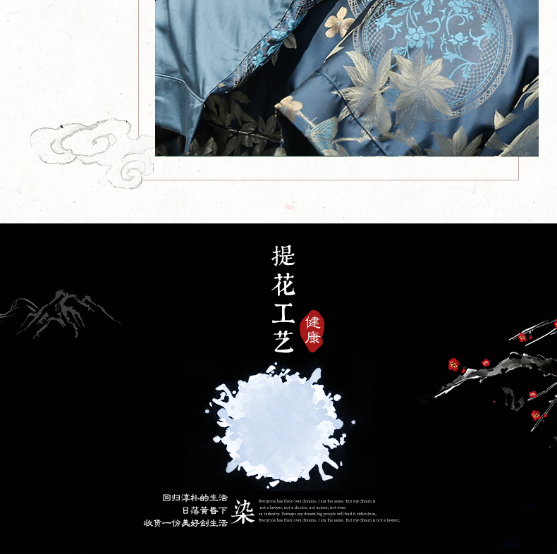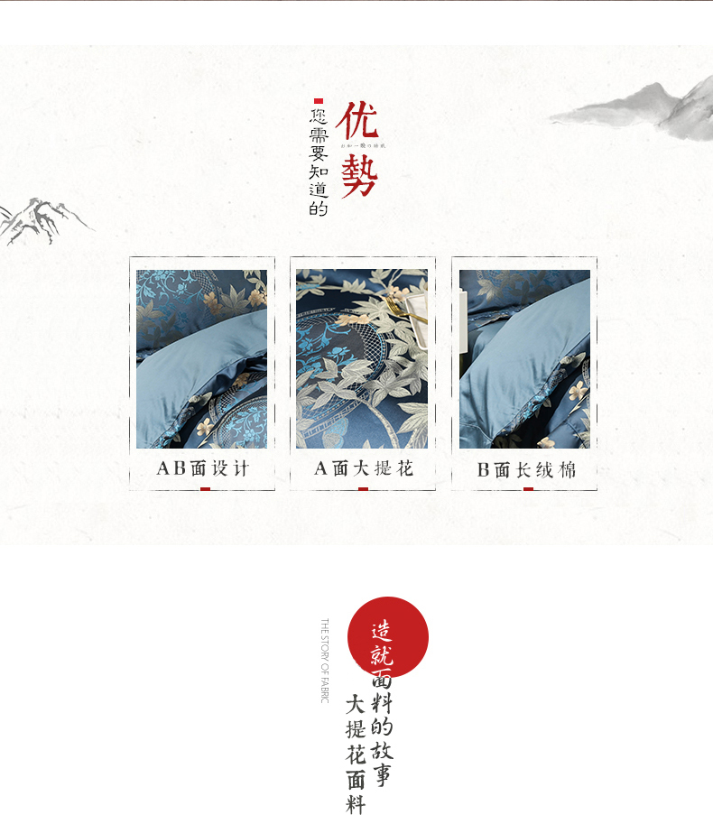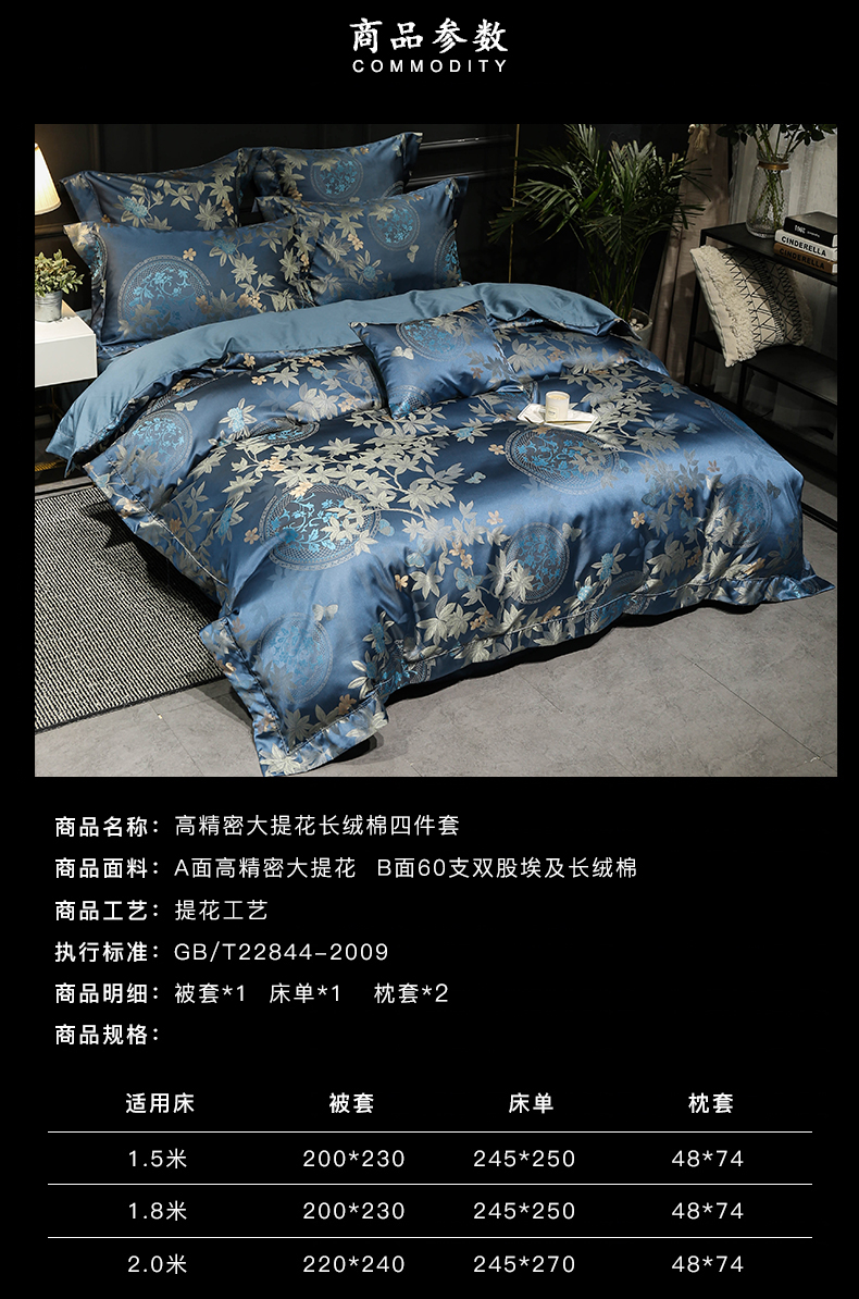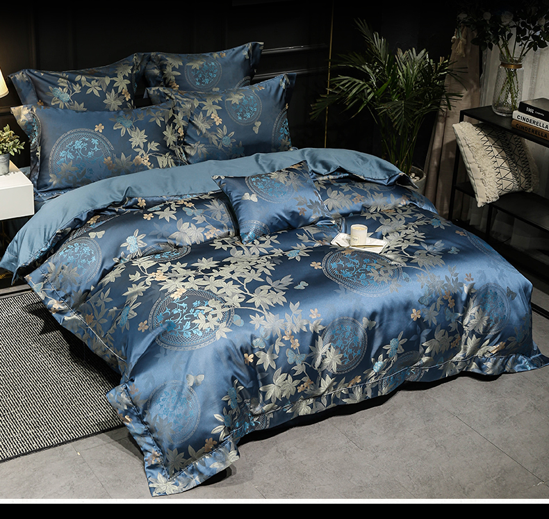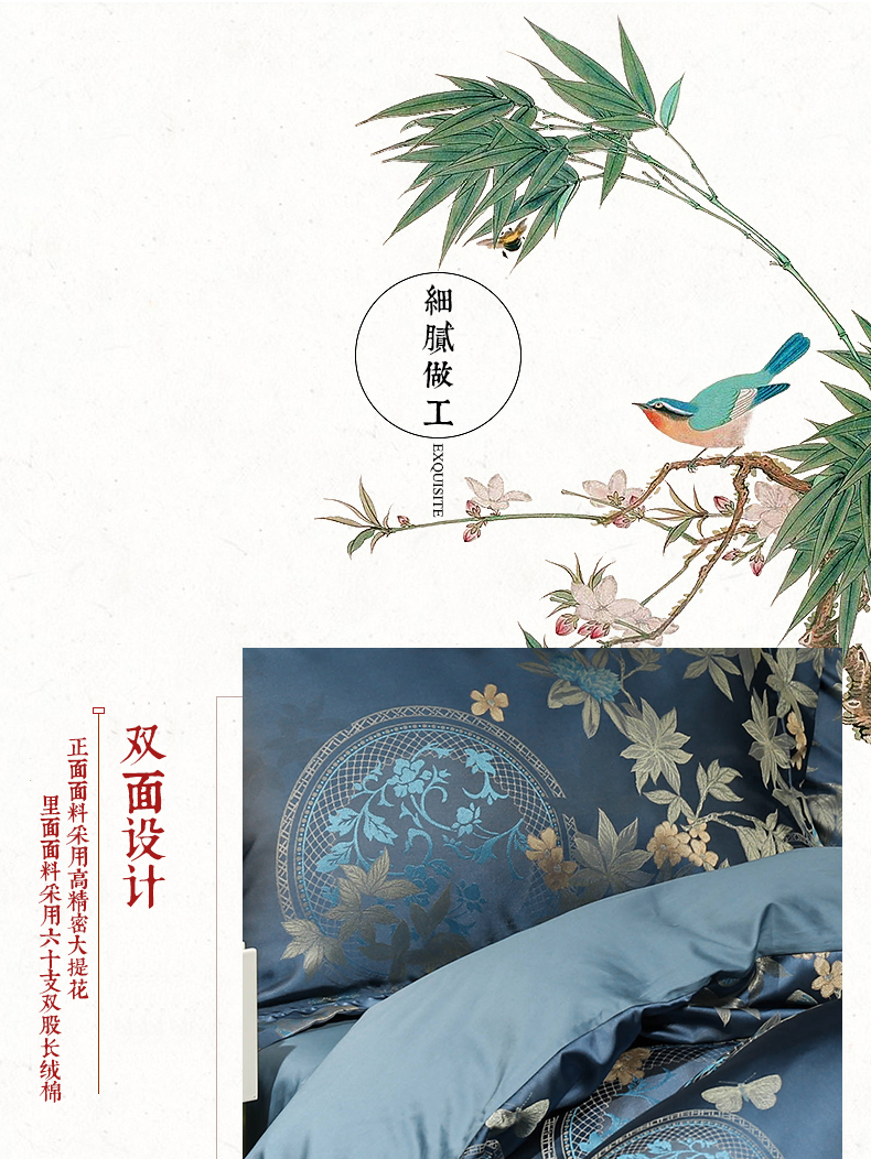 Kadimei light luxury brand 60 thread double strand long staple cotton Satin Jacquard Satin four piece set pure cotton all cotton 2019 new comfortable new Chinese style Fenghuazhengmao suitable for 2.0m bed [quilt cover 220 * 240 bed sheet 245 * 2