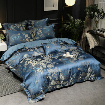 Kadimei light luxury brand 60 thread double strand long staple cotton Satin Jacquard Satin four piece set of pure cotton 2019 new comfortable new Chinese style Fenghuazhengmao suitable for 2.0 meter bed [quilt cover 220 * 240 bed sheet 245 * 2 [pictu...