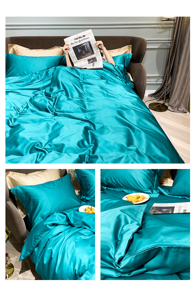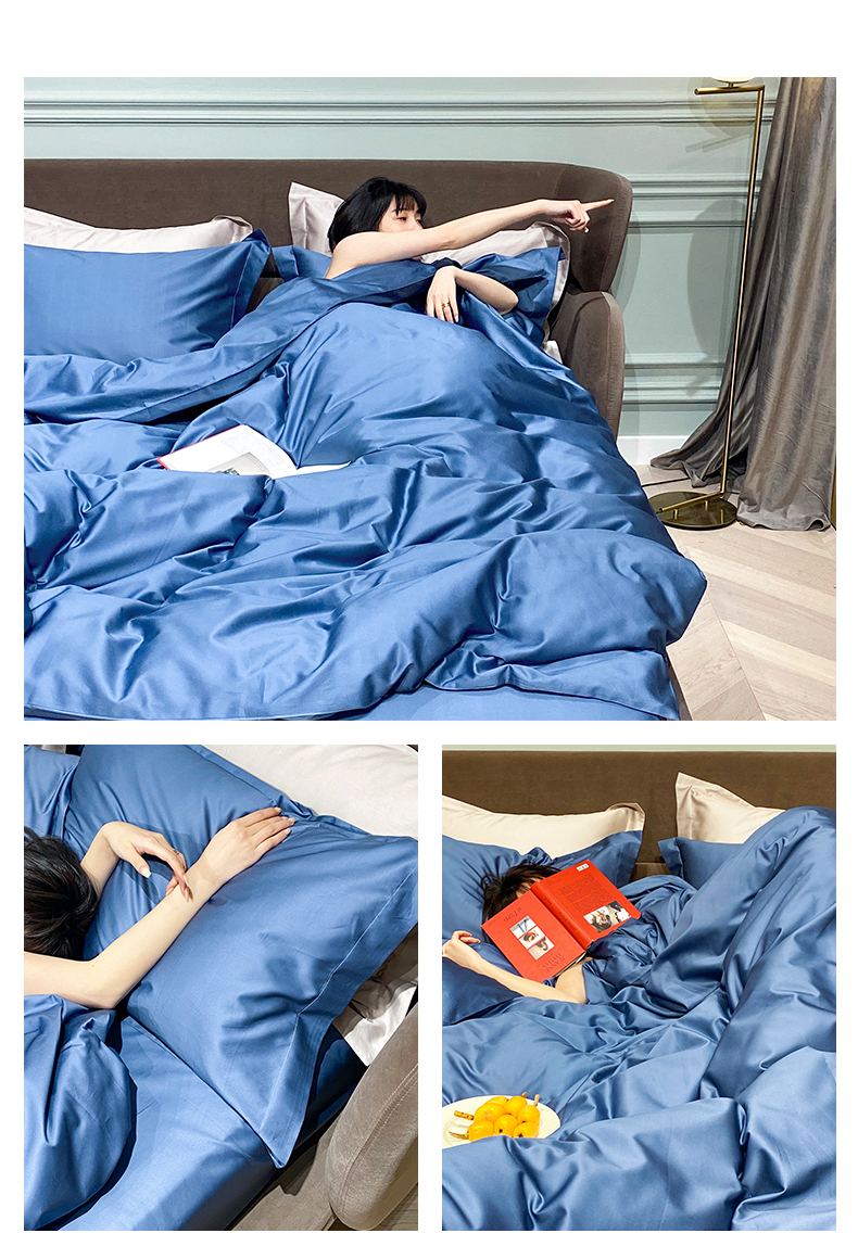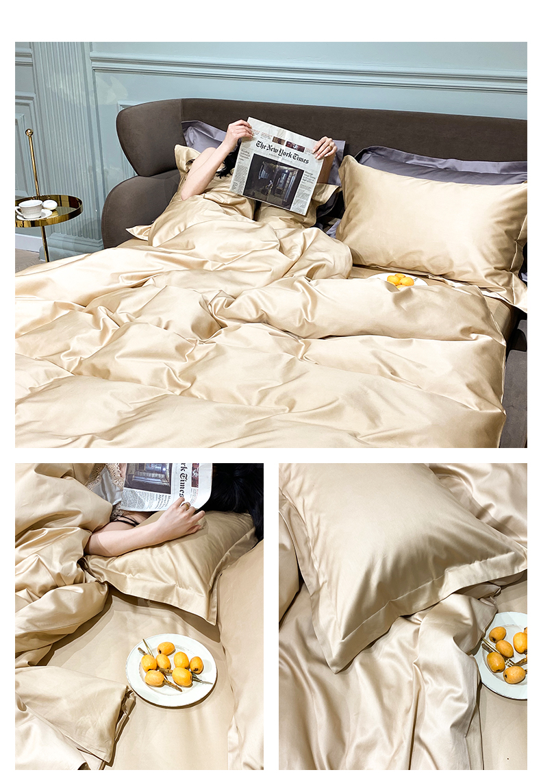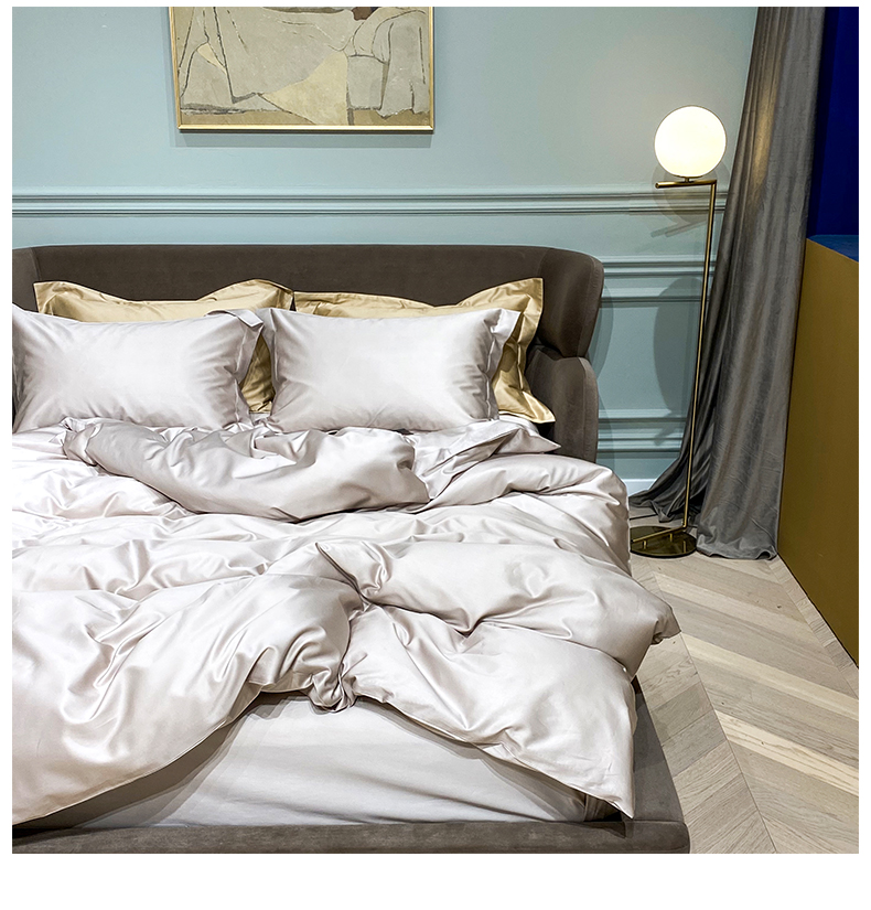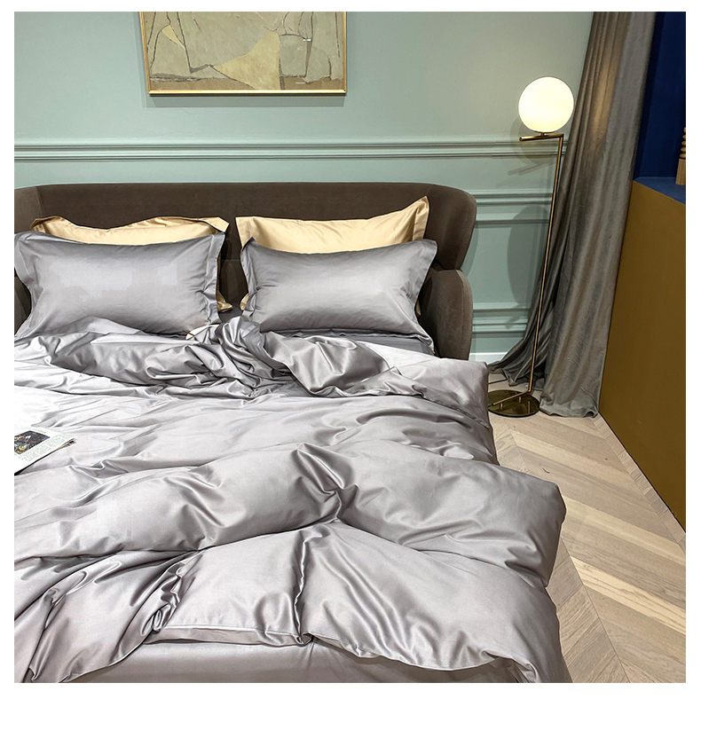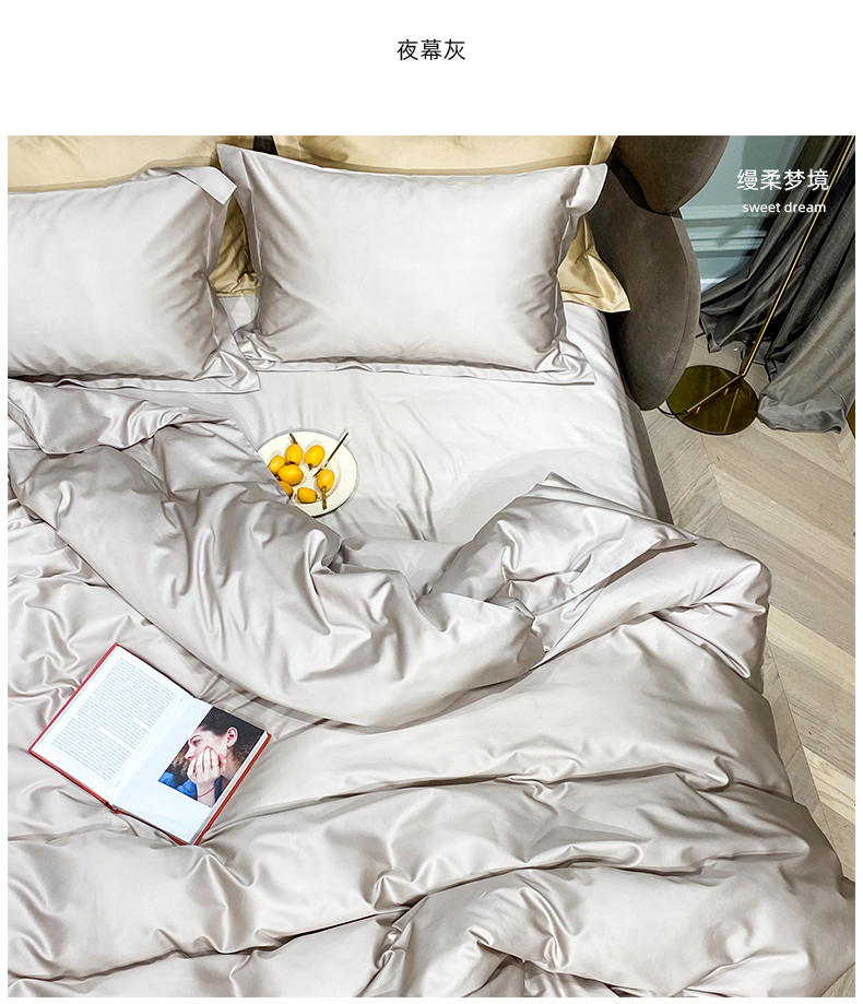 Kadimei light luxury brand 100 thread cotton 4-piece pure cotton bed sheet and quilt cover Nordic bedding set solid color bedclothes night grey E [100 thread count cotton] 2.0m bed sheet (220 * 240cm quilt cover + 245 * 2 [picture price brand quotati...