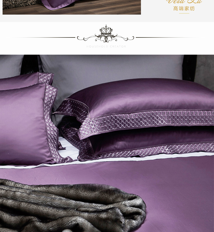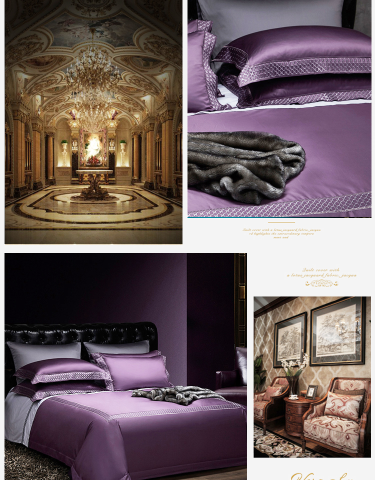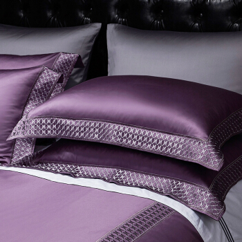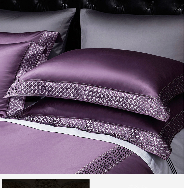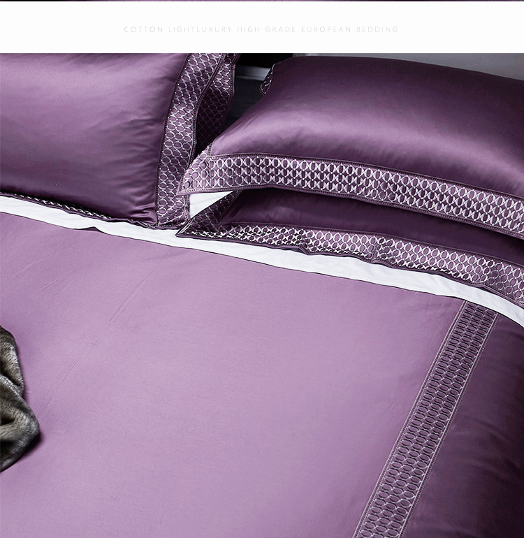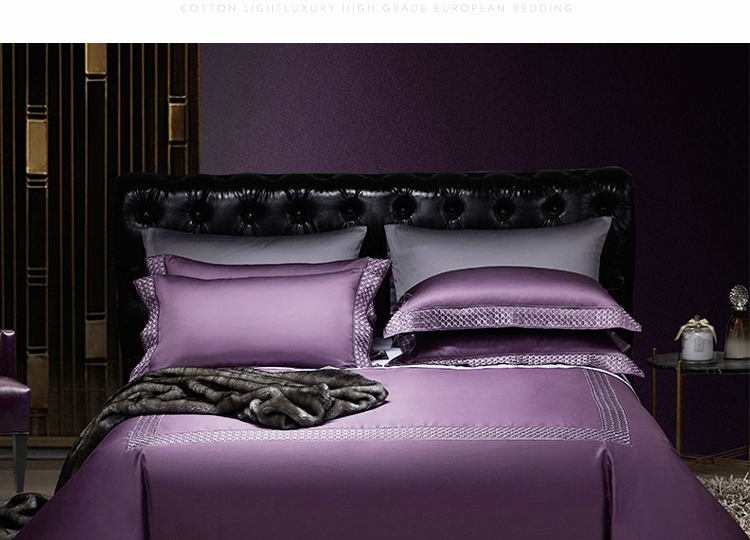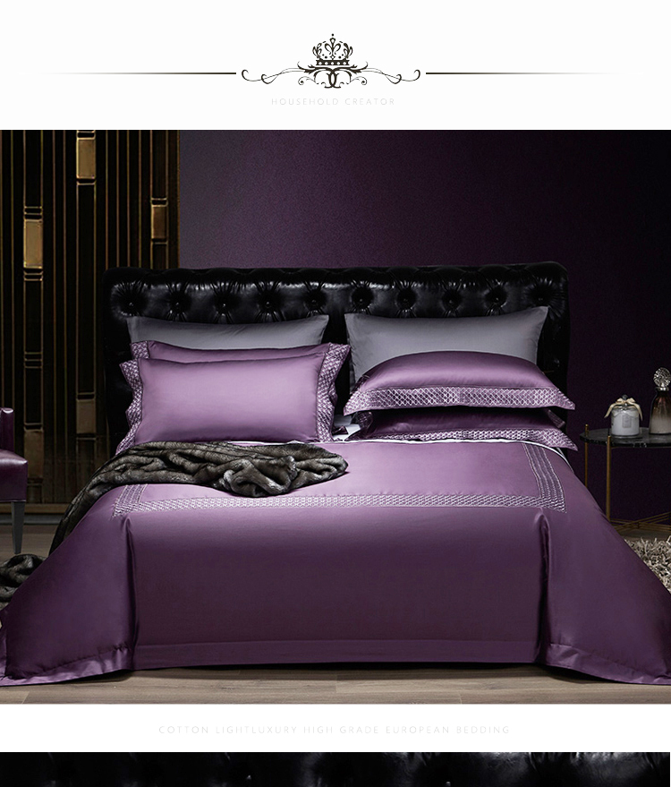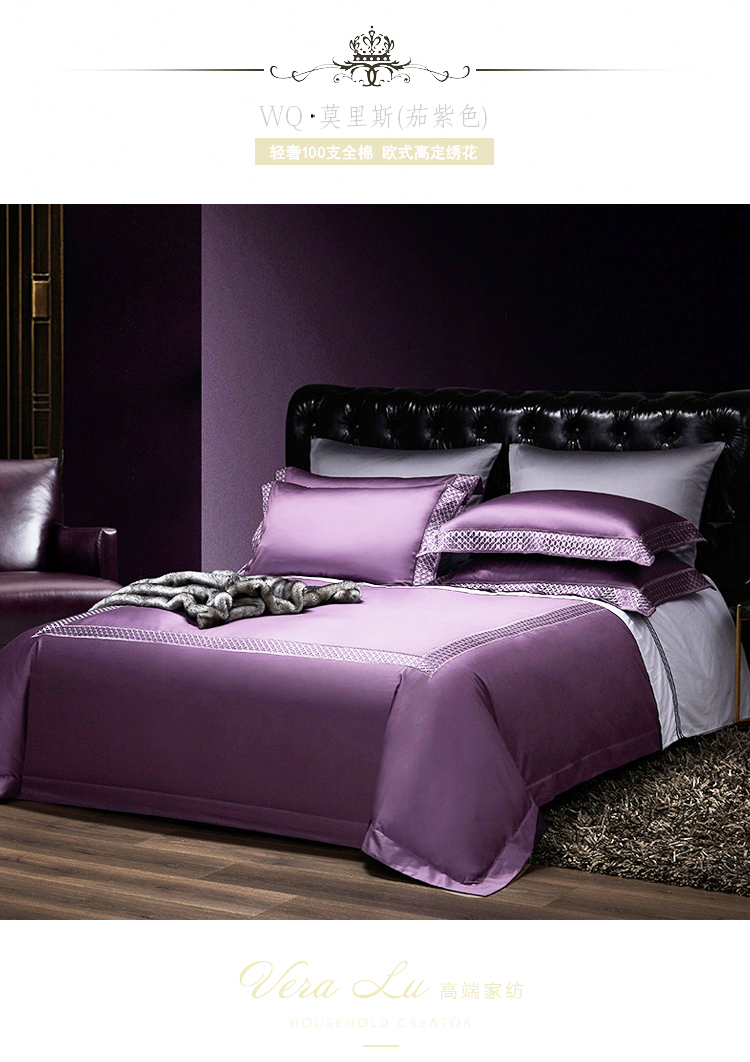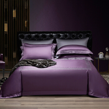 Kadimei light luxury brand European 100 thread cotton 4-piece set of purple pure cotton embroidered bedding model room quilt cover Morris (eggplant purple) - 4-piece 1.8m bed (quilt cover 220 * 240) [picture price brand quotation] - Jingdong