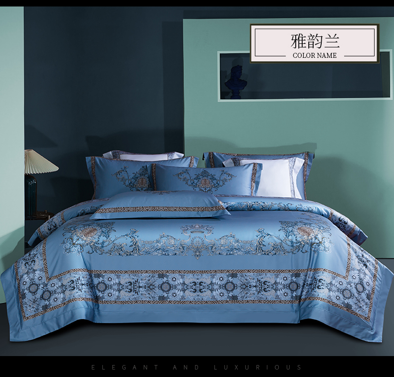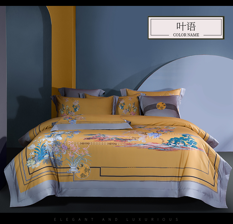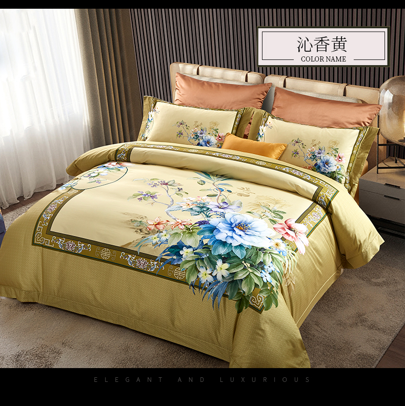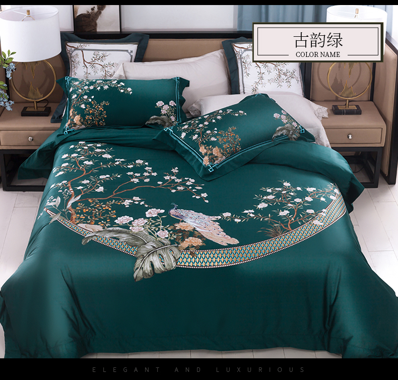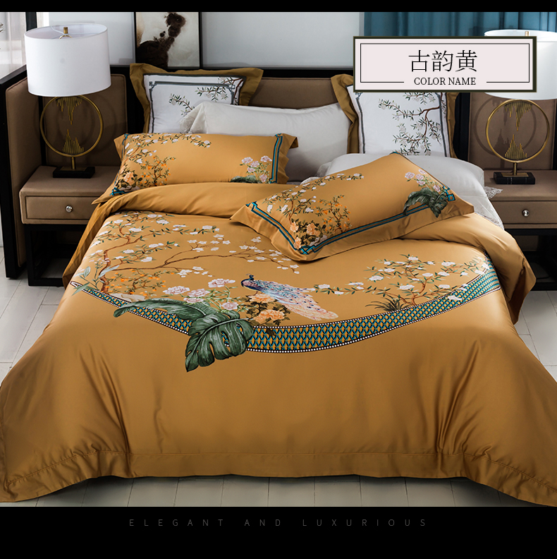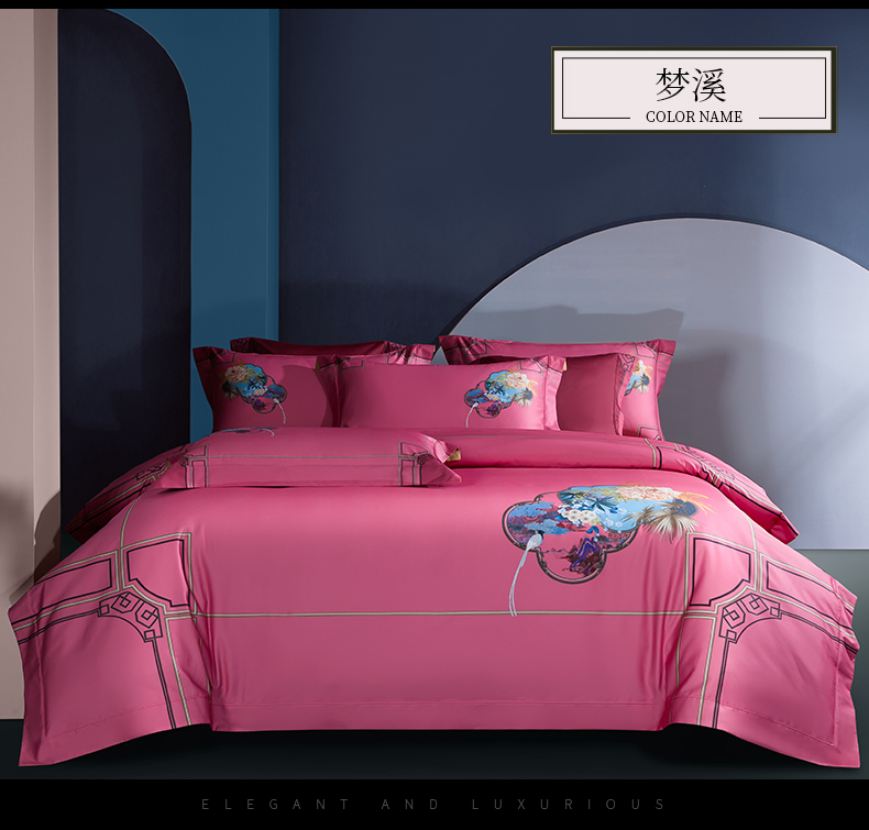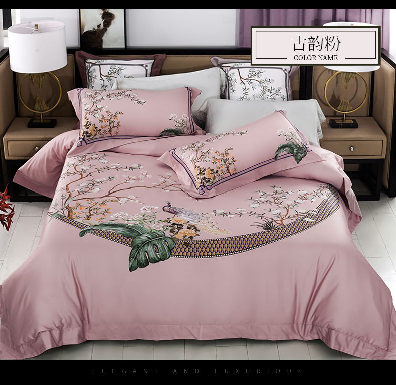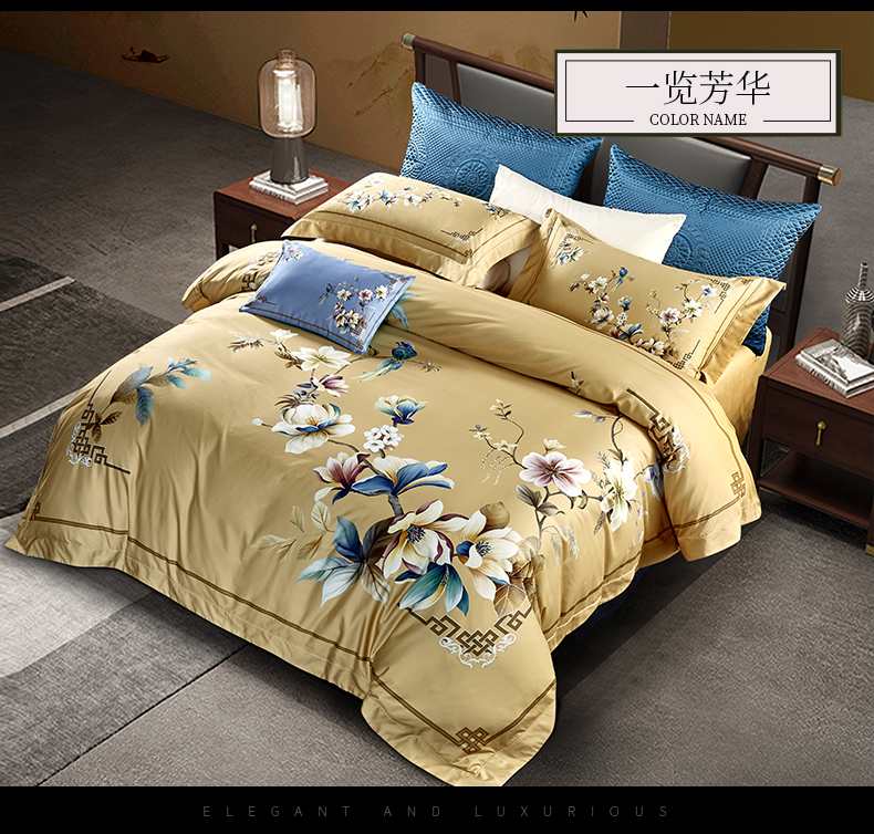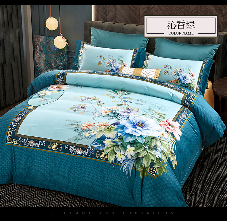 Kadimei light luxury brand 140 thread four piece all cotton cotton long staple cotton skin friendly bed sheet fitted sheet summer quilt cover new Chinese bedding streamer 1.8m (6 ft) bed