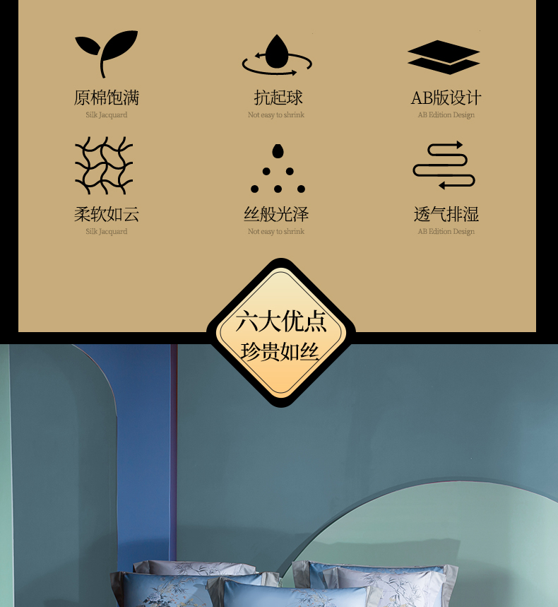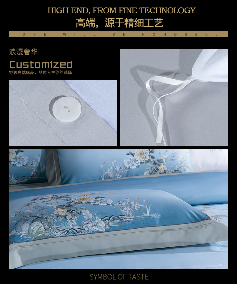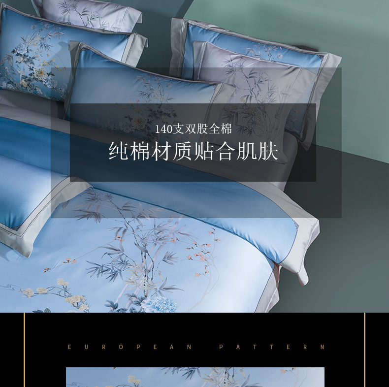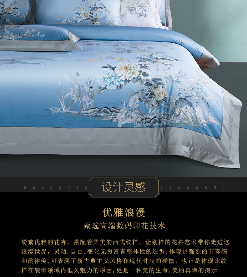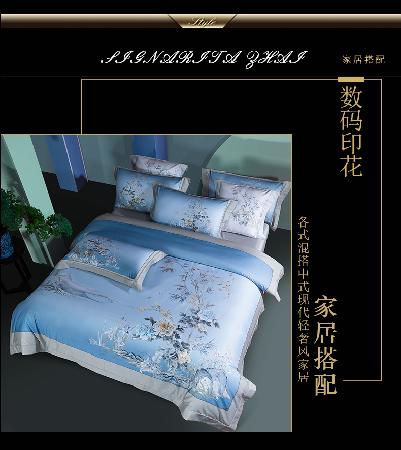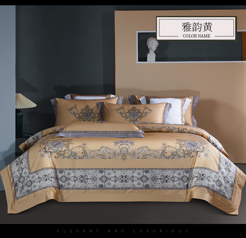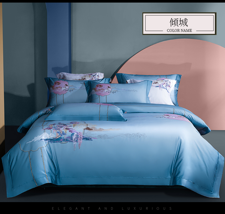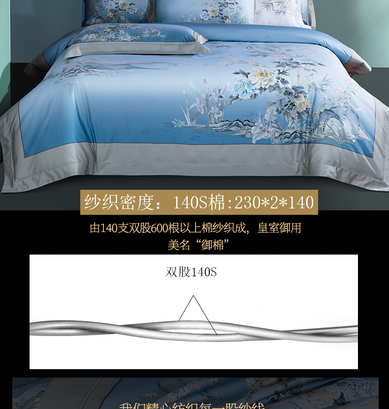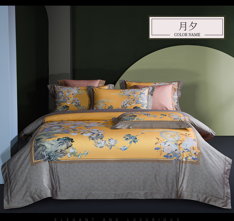 Kadimei light luxury brand 140 thread four piece all cotton cotton long staple cotton skin friendly bed sheet fitted sheet summer quilt cover new Chinese bedding streamer 1.8m (6 ft) bed