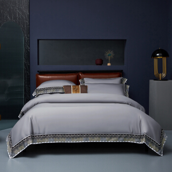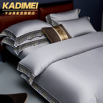 Kadimei light luxury brand simple gray 100 thread cotton 4-piece set of European and American pure color 1.8-meter bed linen via (cream gray) - 4-piece 1.8-2.0 meter bed [quilt cover 220 * 240] [picture price brand quotation] - Jingdong