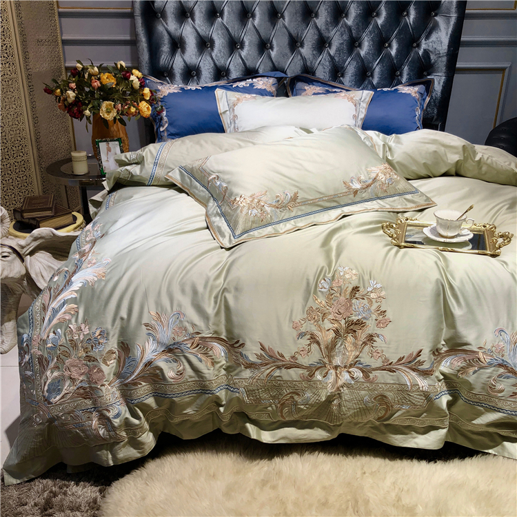 | Product Name: kadimei light luxury brand European bedding 100 thread four piece set embroidery pure cotton high end cotton villa blue bedding Victoria - Champagne green + shop gift box 2m wide bed [quilt cover 220 * 240] | Product Name: kadimei light luxury brand European bedding 100 thread four piece set embroidery pure cotton high end cotton villa blue bedding Victoria - Champagne green + shop gift box 2m wide bed [quilt cover 220 * 240] |