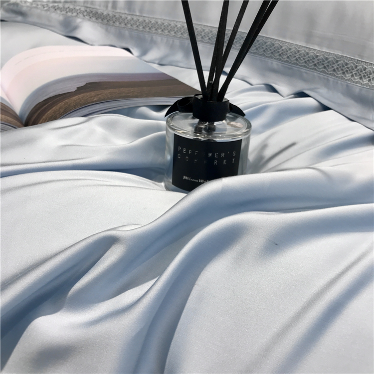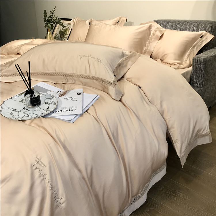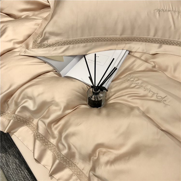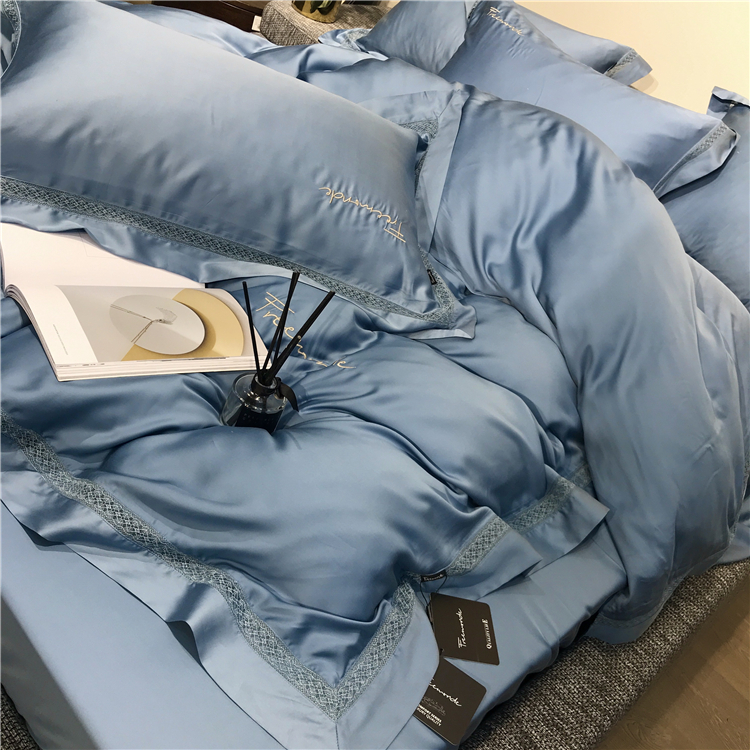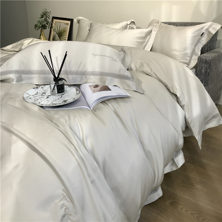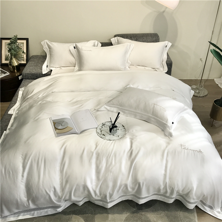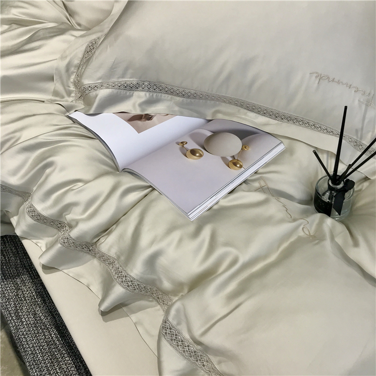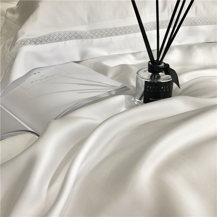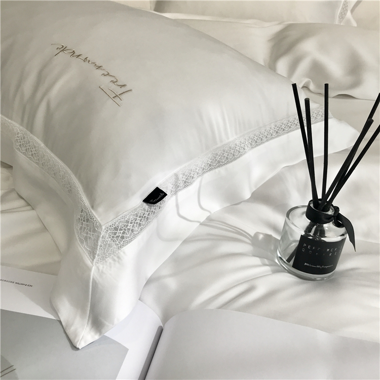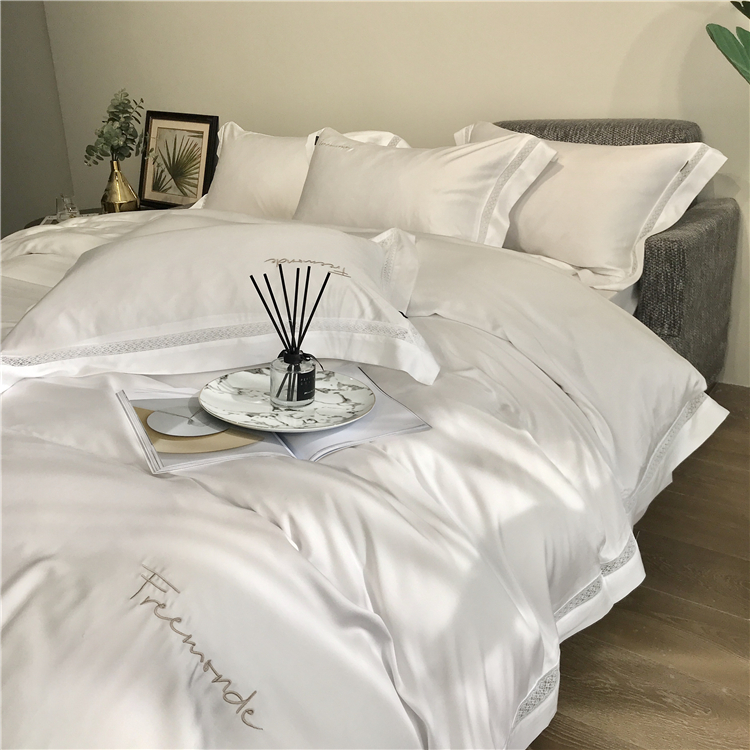 Kadimei light luxury brand high end hyaluronic acid 80 thread double-sided Tencel four piece set hollow lace lace cool feeling silky and smooth naked Bedding Set Xuan white 2.0m bed sheet [quilt cover 220x240]