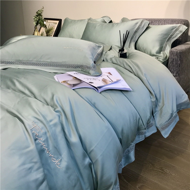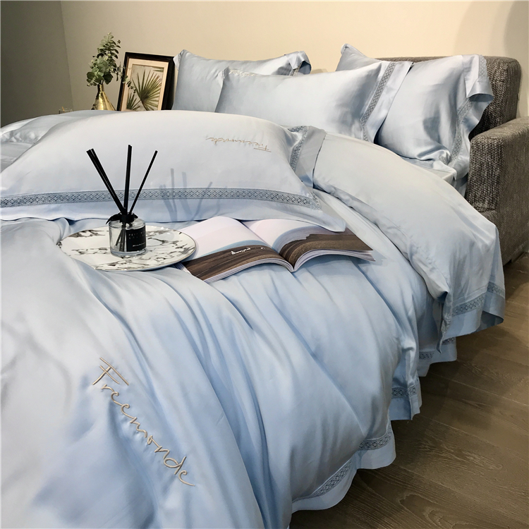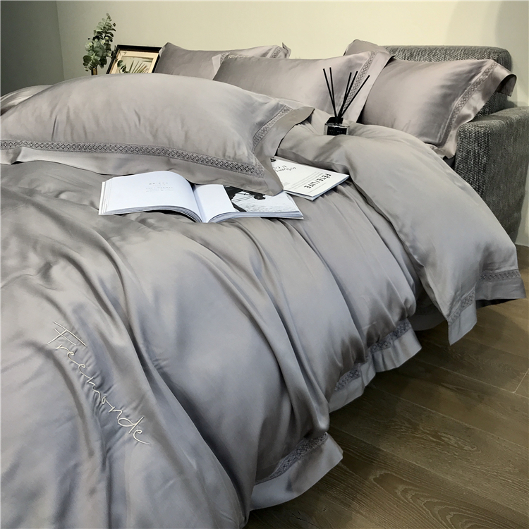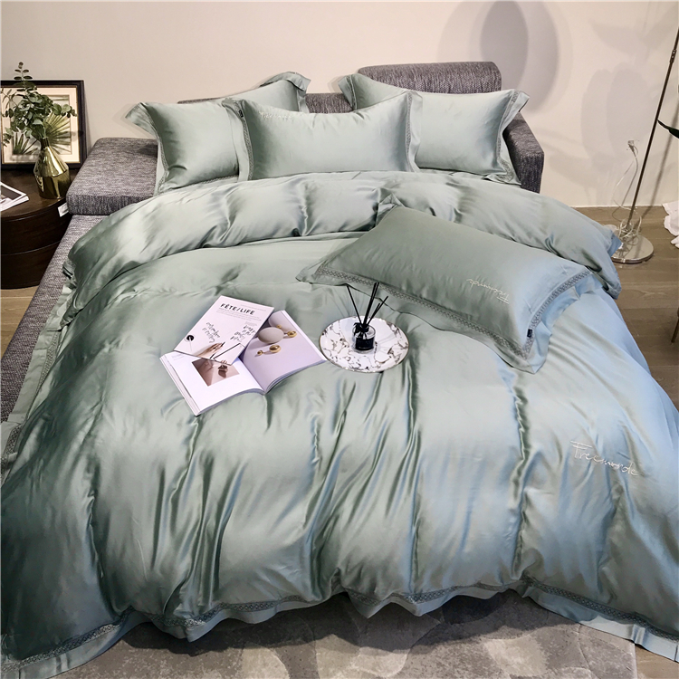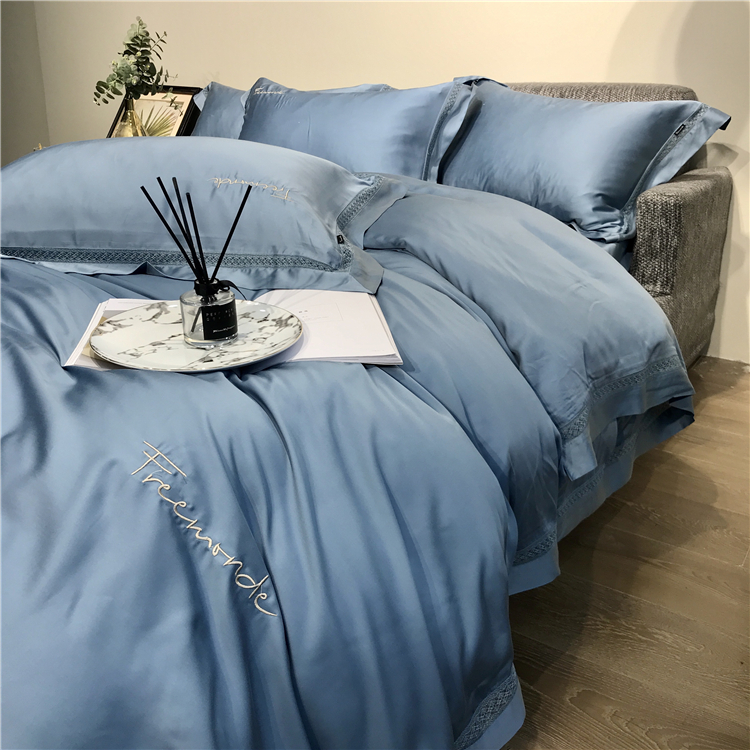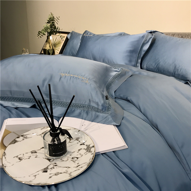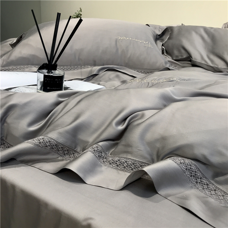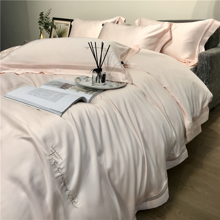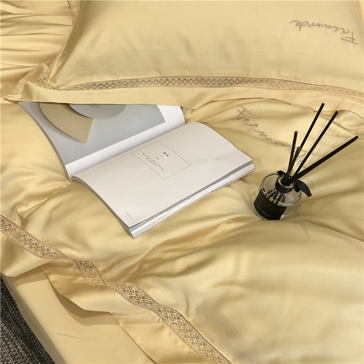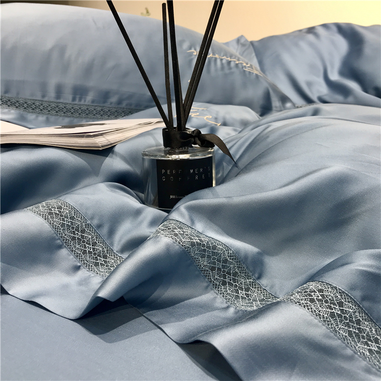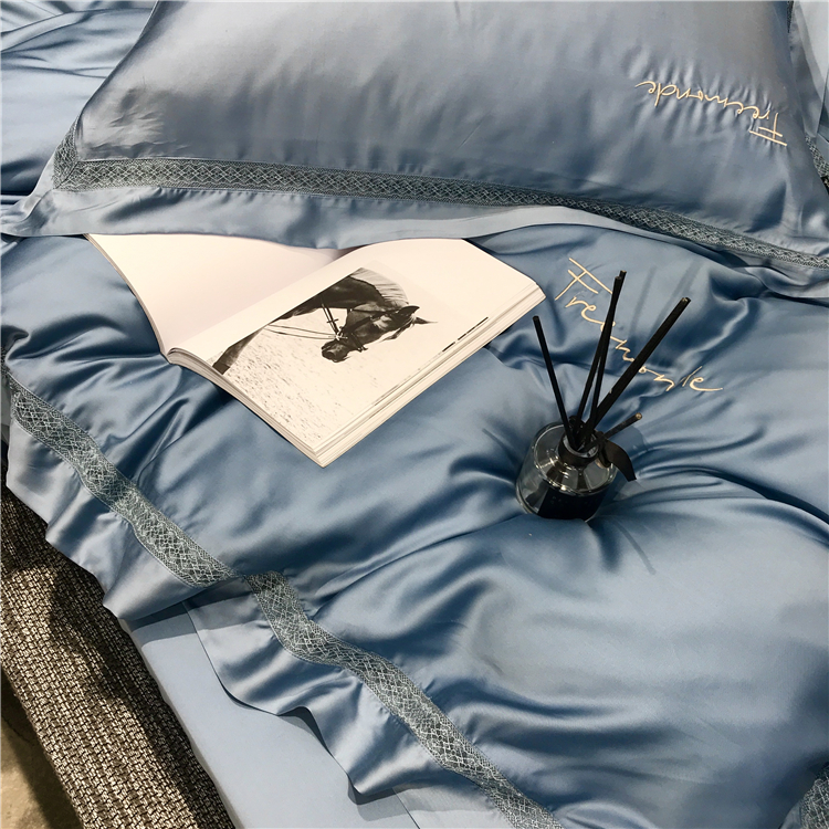 Kadimei light luxury brand high end hyaluronic acid 80 thread double-sided Tencel four piece set hollow lace lace cool feeling silky and smooth naked Bedding Set Xuan white 2.0m bed sheet [quilt cover 220x240]