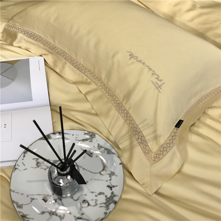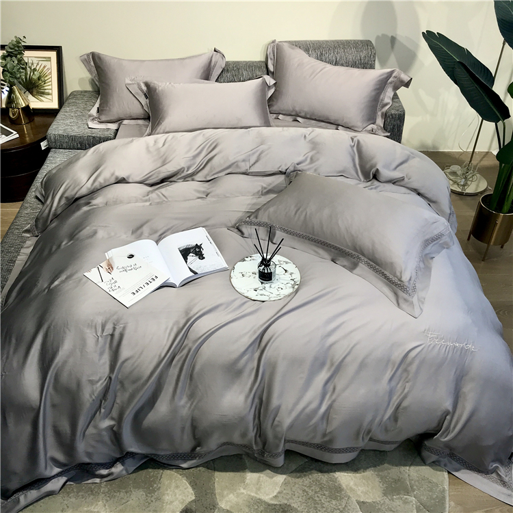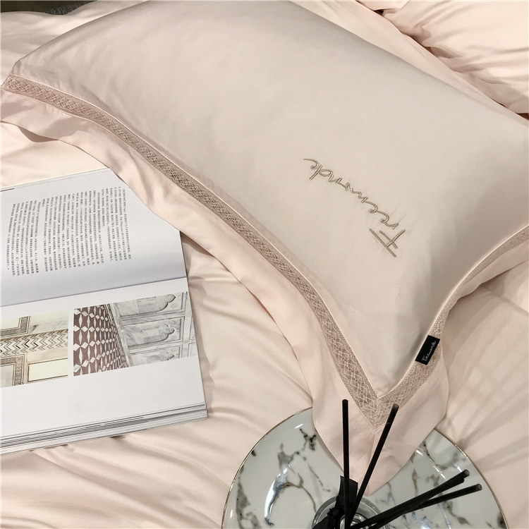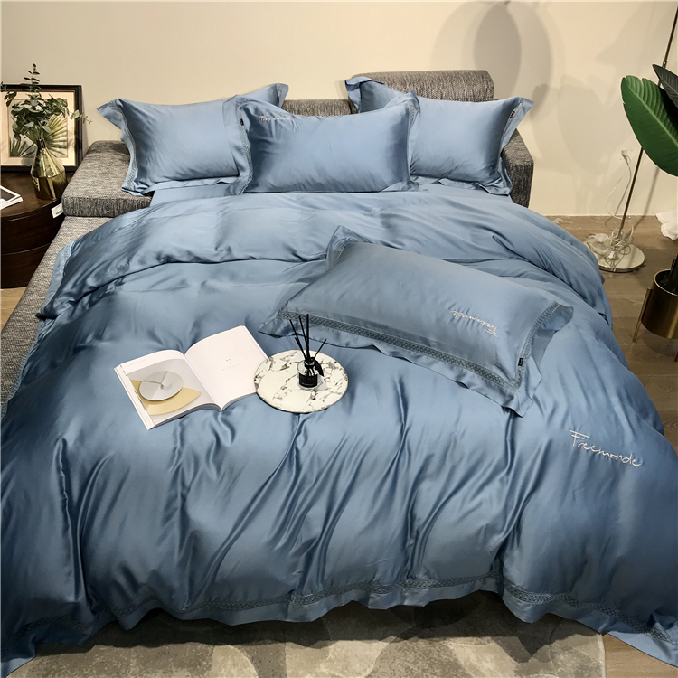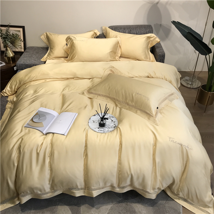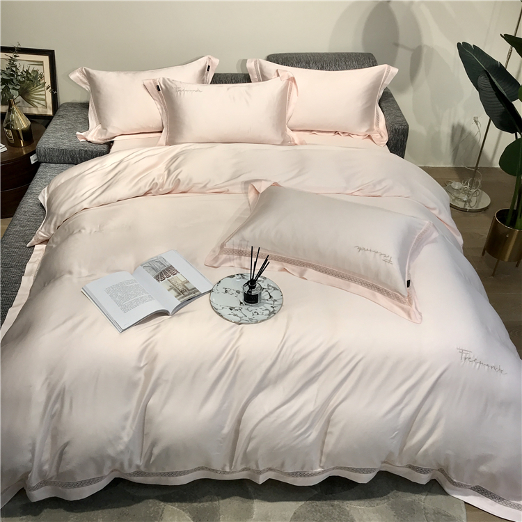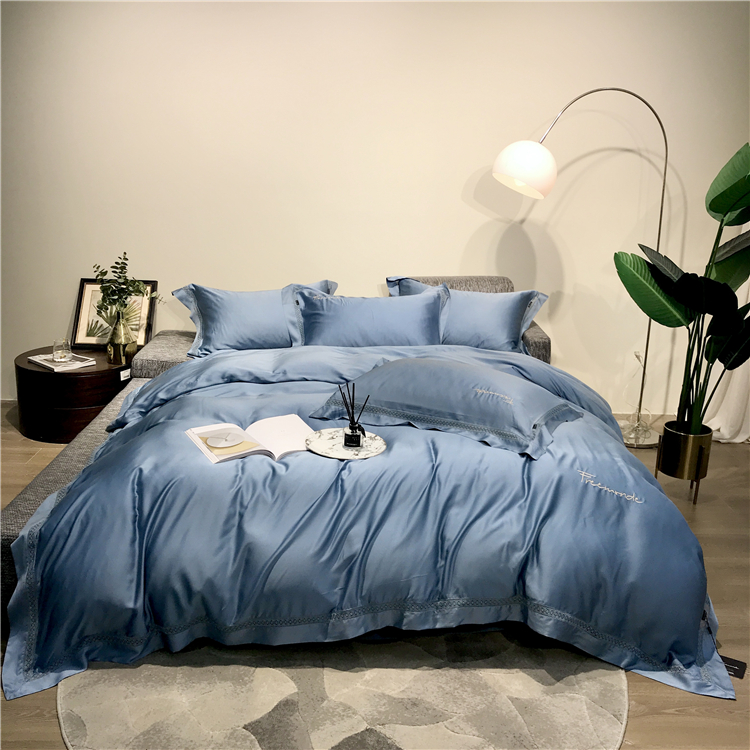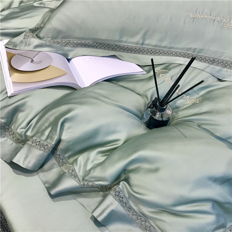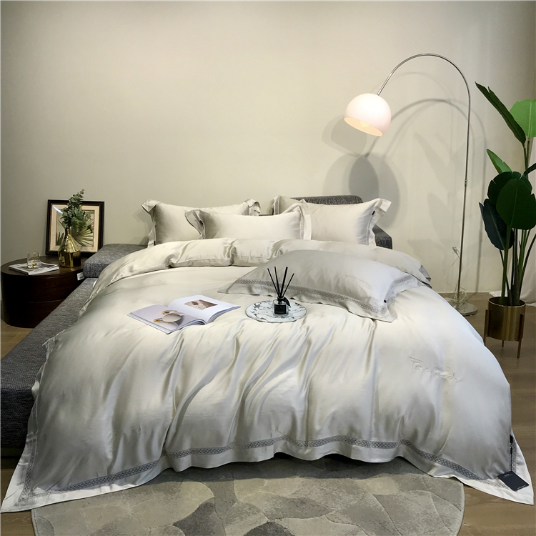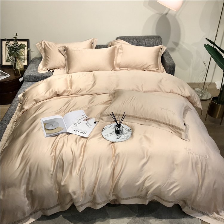 Kadimei light luxury brand high end hyaluronic acid 80 thread double-sided Tencel four piece set hollow lace lace cool feeling silky and smooth naked Bedding Set Xuan white 2.0m bed sheet [quilt cover 220x240]