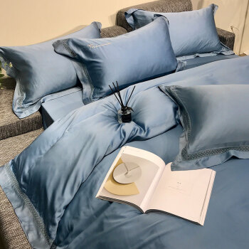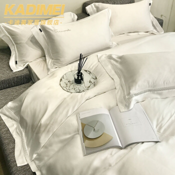 Kadimei light luxury brand high-end hyaluronic acid 80 thread double-sided Tencel four piece set with hollow lace lace, cool feeling, silky and smooth bed goods package Xuan white 2.0m bed sheet [quilt cover 220x240] [picture price brand quotation] -...