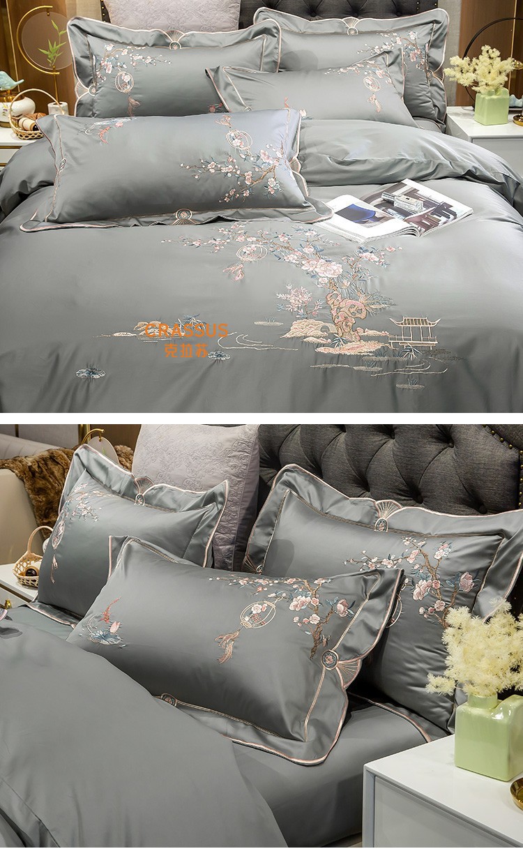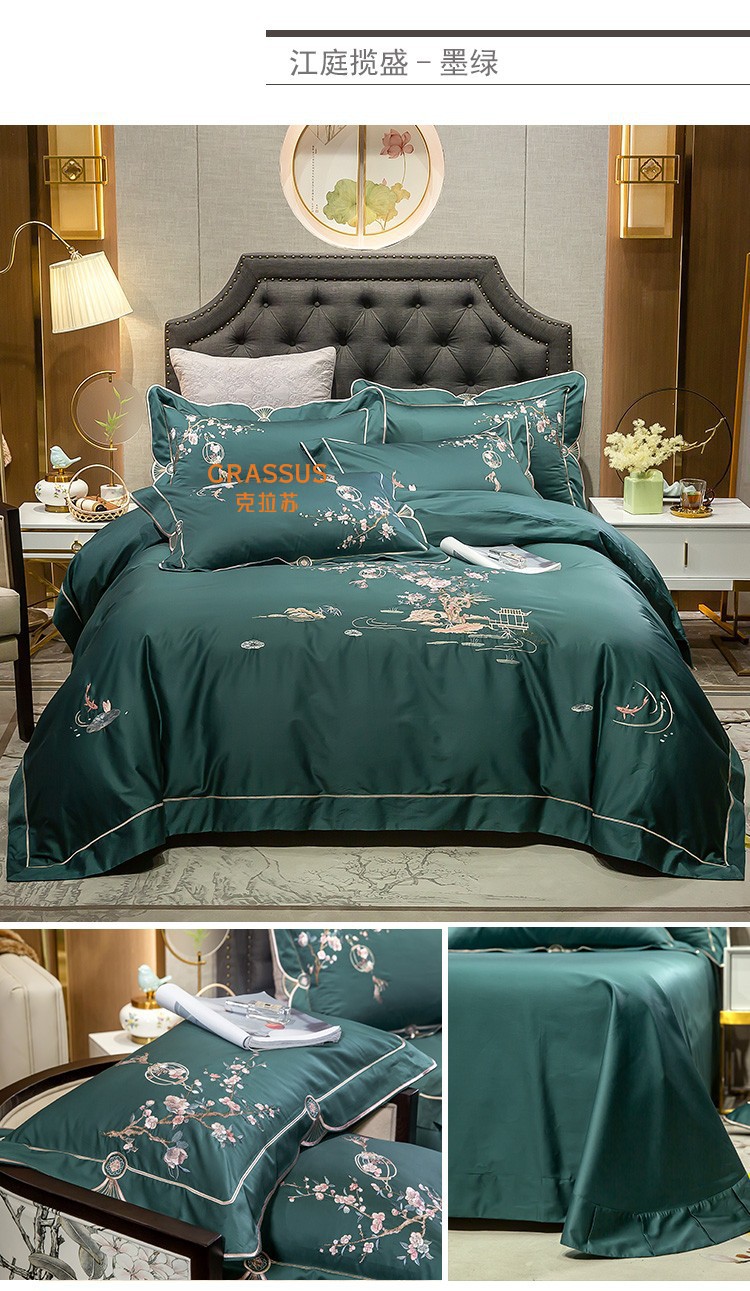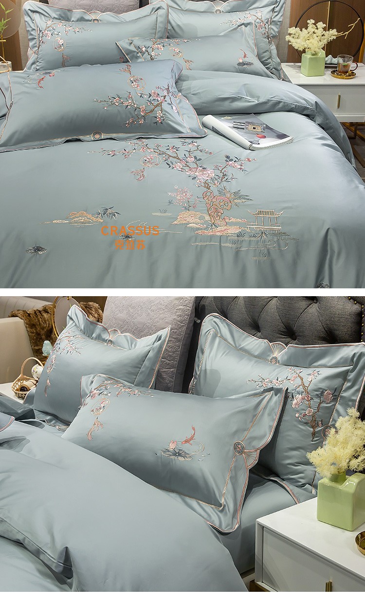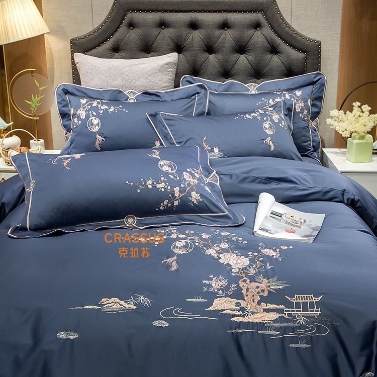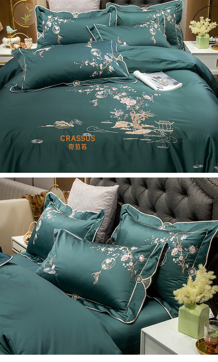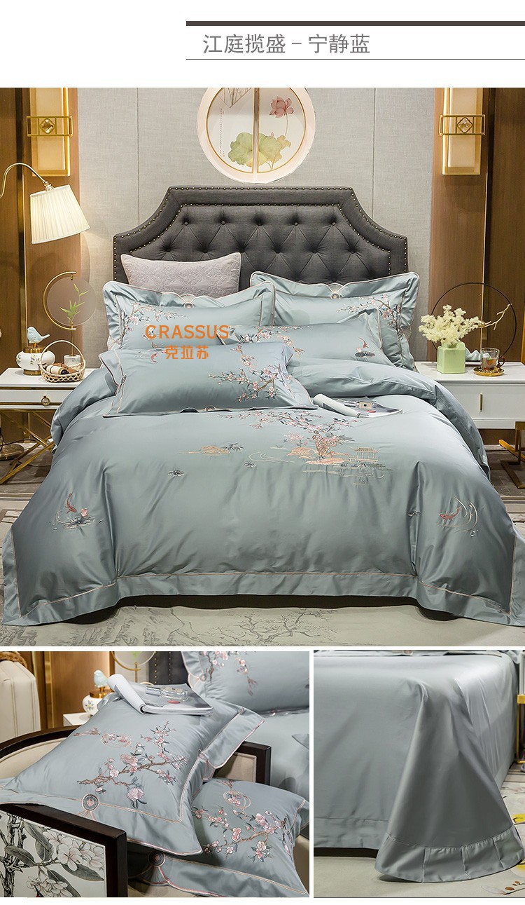 | Trade name: crussus Krasu 100 thread count long staple cotton embroidered four piece set new Chinese style embroidery pure cotton four piece set all cotton bedding cover jiangtinglansheng - 1.5-1.8m wide bed cover [quilt cover 200 * 230] | Trade name: crussus Krasu 100 thread count long staple cotton embroidered four piece set new Chinese style embroidery pure cotton four piece set all cotton bedding cover jiangtinglansheng - 1.5-1.8m wide bed cover [quilt cover 200 * 230] |