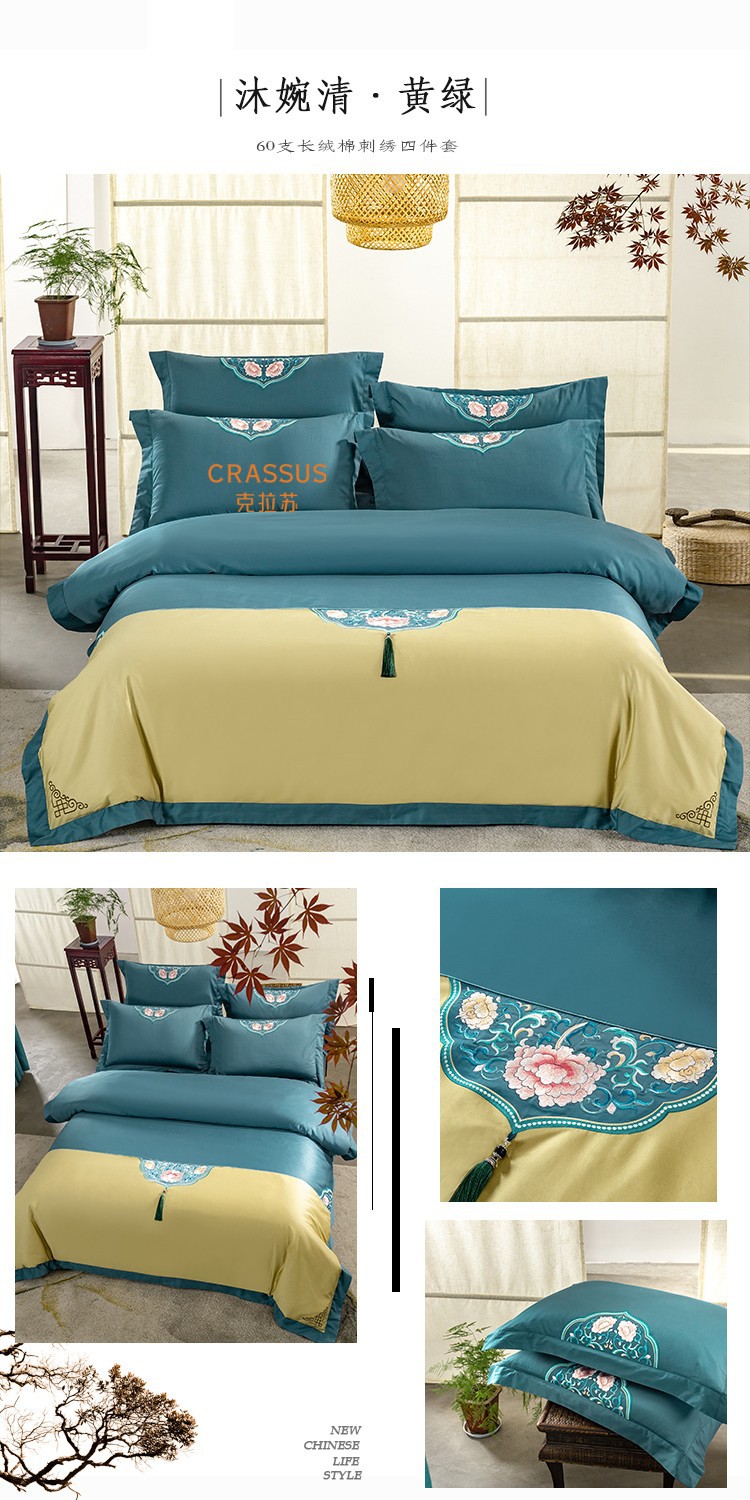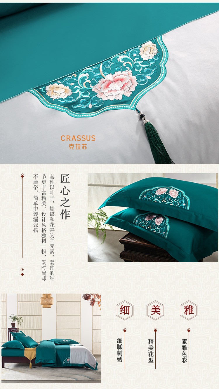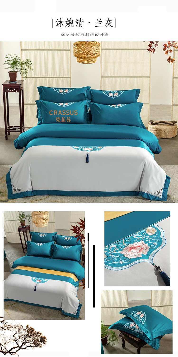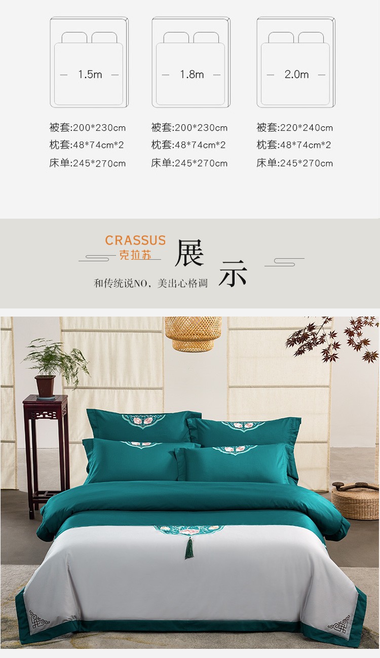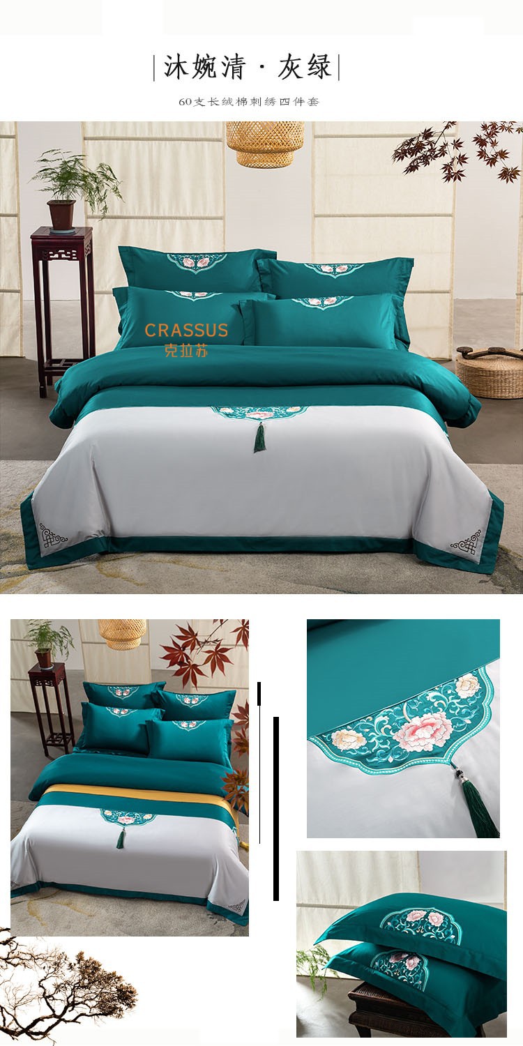 | Trade name: crussus Kelasu new Chinese classical national style bed goods 60 thread count cotton long staple cotton Satin Embroidery 4-piece set of pure cotton bedding Mu Wan Qing grey green 1.5 / 1.8m wide bed [quilt cover 200 * 230cm] | Trade name: crussus Kelasu new Chinese classical national style bed goods 60 thread count cotton long staple cotton Satin Embroidery 4-piece set of pure cotton bedding Mu Wan Qing grey green 1.5 / 1.8m wide bed [quilt cover 200 * 230cm] |