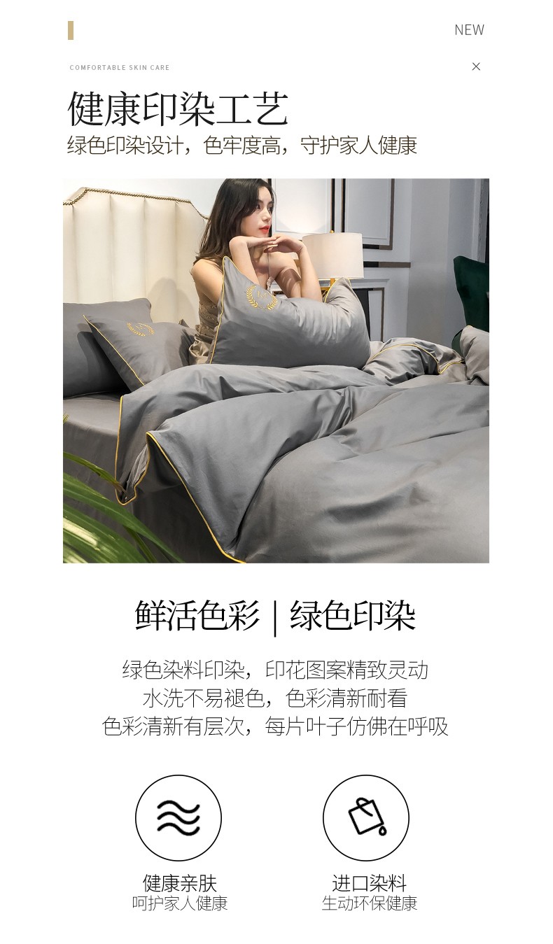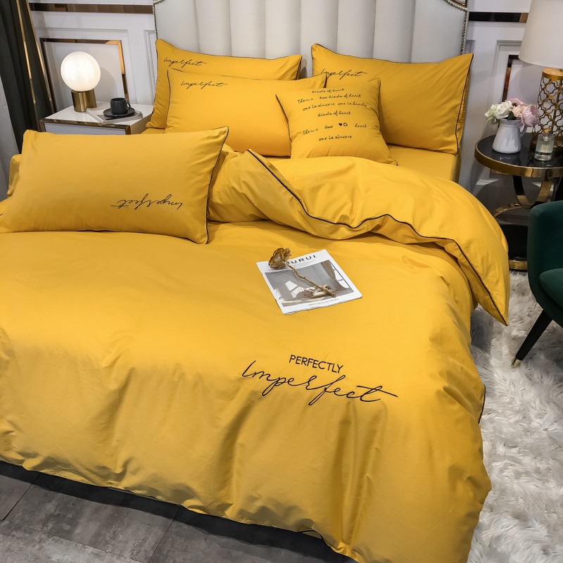 Cathyladi four piece bed set pure cotton ground wool simple Nordic 60 thread count cotton four piece set all cotton cotton net red bed sheet quilt cover European bedding Berlin sapphire blue four piece set-1.5m bed sheet fit 200x230cm